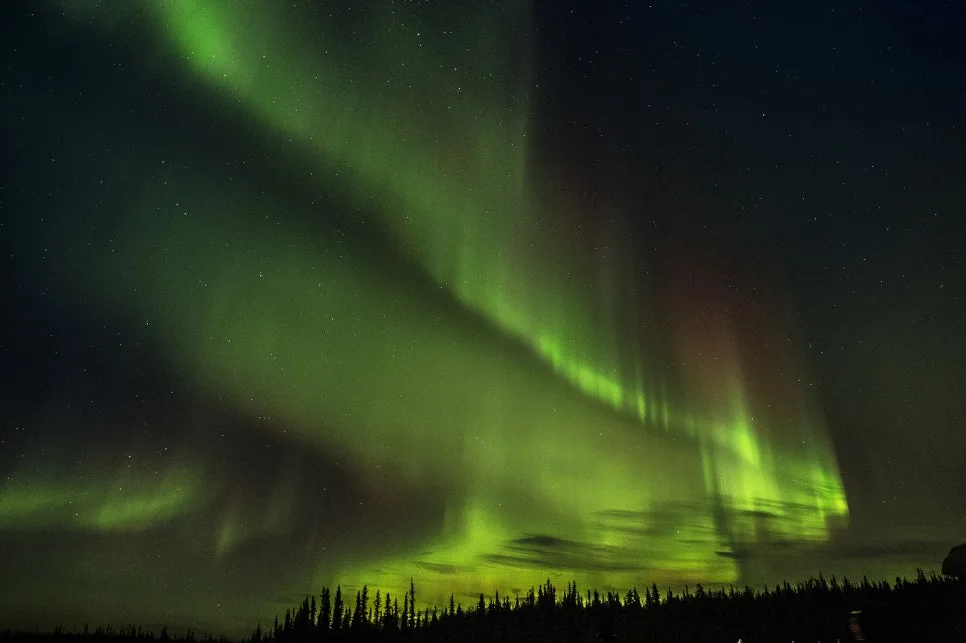 하늘에 갑자기 녹색의 커튼이 드리워지더니 춤추듯 너울거린다. 부드러운 빛으로 흩날리며 쏟아지는 별과 함께 반짝인다. 가느다란 연기에서 불꽃 모양으로, 굵은 선에서 춤추는 너울로, 펄럭이던 커튼이 문득 사라지는가 싶더니 다른 쪽에 나타나 곡선을 그리며 솟구친다. 천상의 아름다움이 꿈결처럼 온 하늘을 떠돈다.
