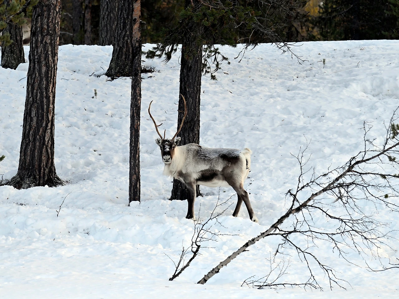 '큰일 나겠네. 왜 저러고 있지?‘ 하면서 자세히 보니 순록이다. 차가 다가가자 얼른 눈 둔덕을 넘어 숲으로 사라졌다. 순록은 뿔도 자태도 우아하고 점잖다.