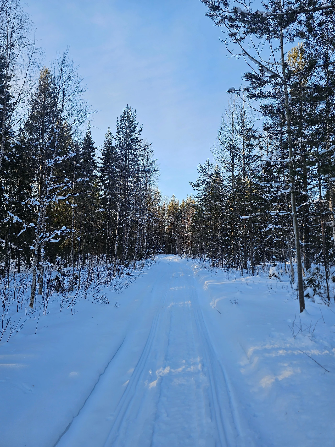 다음 날 낮에는 숙소 앞 트레일을 따라 걸었다. 인적 하나 없는 새하얀 길이 고요하게 이어졌다. 트레일에서 조금만 벗어나면 눈이 60-70cm나 쌓여 있어 그대로 푹푹 빠져버린다. 전나무와 자작나무 사이로 어디선가 뾰로롱 새소리가 울려퍼진다. 끝없이 펼쳐진 눈세상 속에서 생명들이 어떻게 살아가는지 문득 궁금해진다. 토끼일까, 다람쥐일까, 작은 동물의 발자국만 이어져 있을 뿐, 넓은 세상에서 인간이라고는 오직 둘 뿐인 길을 뽀드득뽀드득 눈 밟는 소리를 내며 마냥 걸었다.