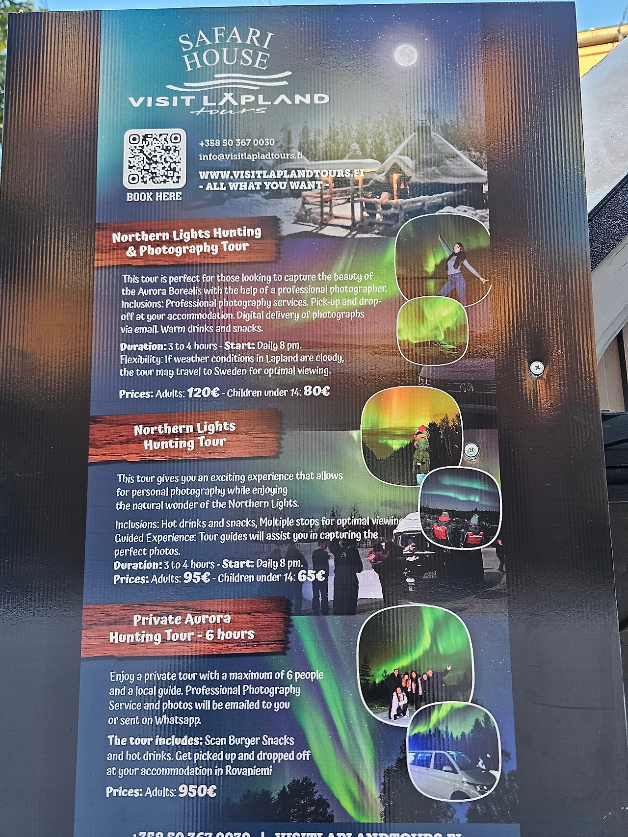 날씨는 변화무쌍하고 눈길 운전을 피할 수 없으니 운전할 자신이 없으면 대도시에서 오로라 투어를 하는 것도 좋은 선택지다. 현지 투어는 전문가가 날씨와 위치를 분석해 안내하므로 초행자에게 편리하다. 하지만 1인당 투어비가 적지 않으며 하루 만에 오로라를 본다는 보장이 없으니 여러 번 투어를 하면 비용은 눈덩이처럼 불어날 것이다.