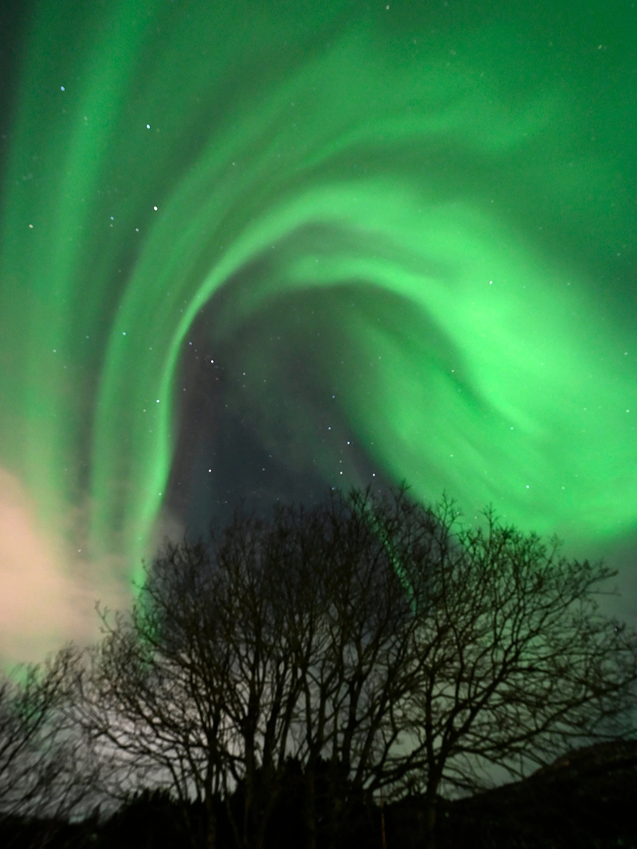 우리가 트롬소를 떠난 바로 그날 밤, 엄청나게 강렬한 오로라가 고위도 지방의 하늘을 뒤덮었다. 북위 42도의 시카고에서도 관측될 만큼 강력한 태양 폭풍이었다. 노르웨이, 스웨덴, 핀란드 전역이 오로라의 빛으로 물들었다고 한다. 위도가 낮아 평소에는 오로라를 보기 힘든 오슬로, 스톡홀름, 헬싱키 하늘에도 오로라가 떴고, 알타와 로바니에미에서는 좀처럼 만나기 어려운 붉은 오로라가 화려하게 춤췄다고 한다.