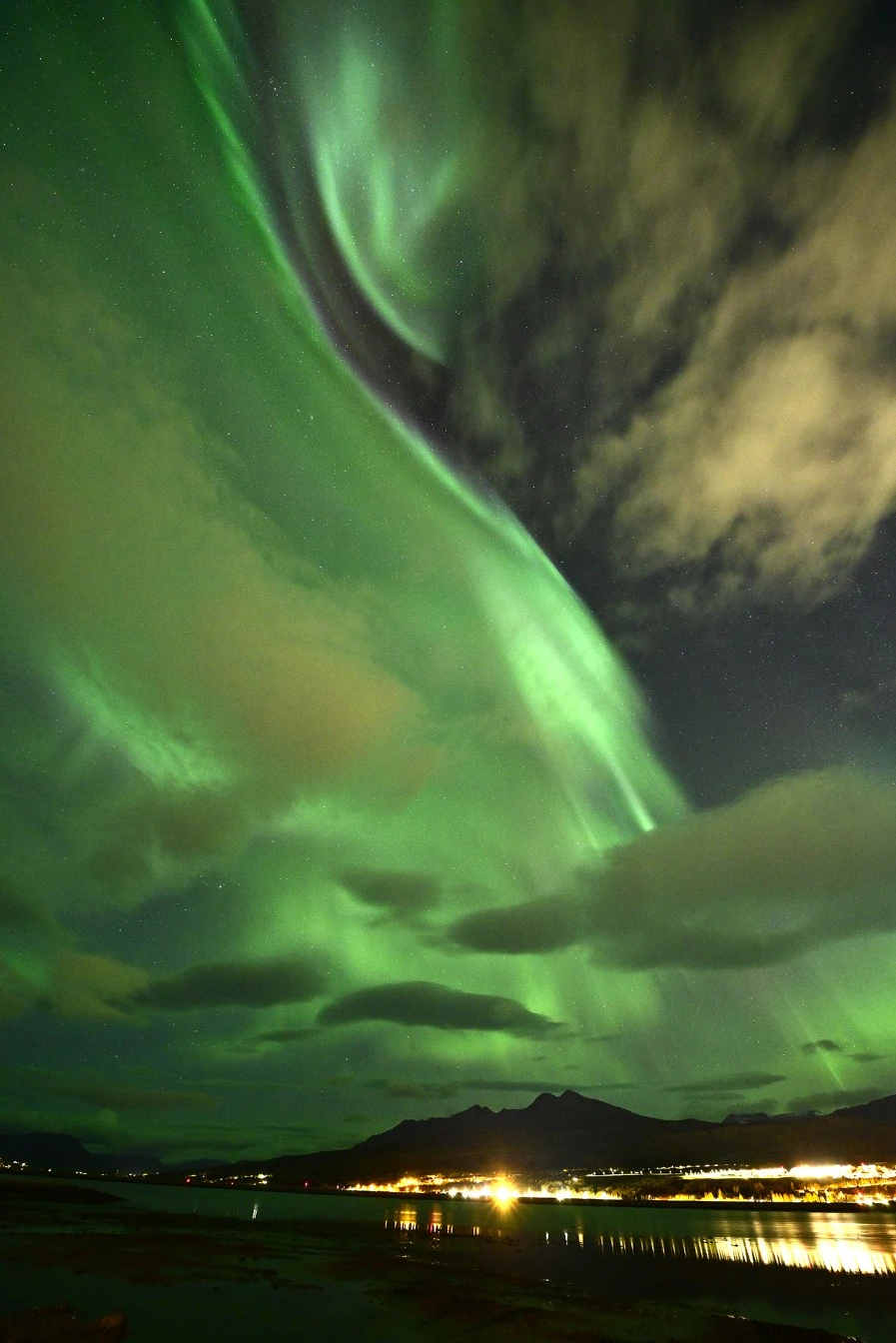 그리고 마지막 날 밤, 우리의 숙소 근처에서도 오로라 스톰이 찾아왔다. 짧지만 하늘을 가득 덮은 초록의 향연.