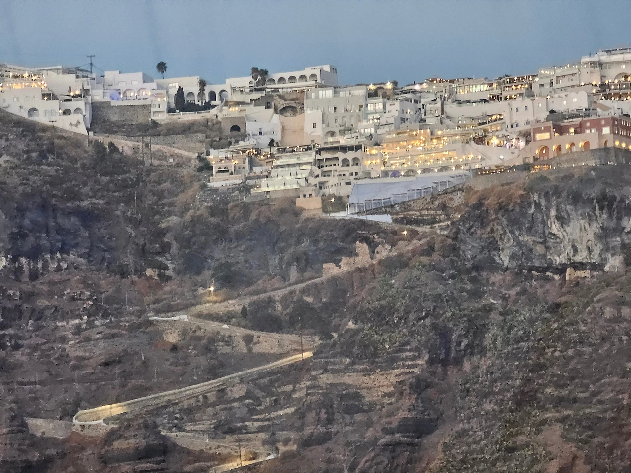보트에서 내리면 케이블카나 도보로 급경사 절벽 위에 있는 피라(Fira) 마을까지 올라가야 한다.