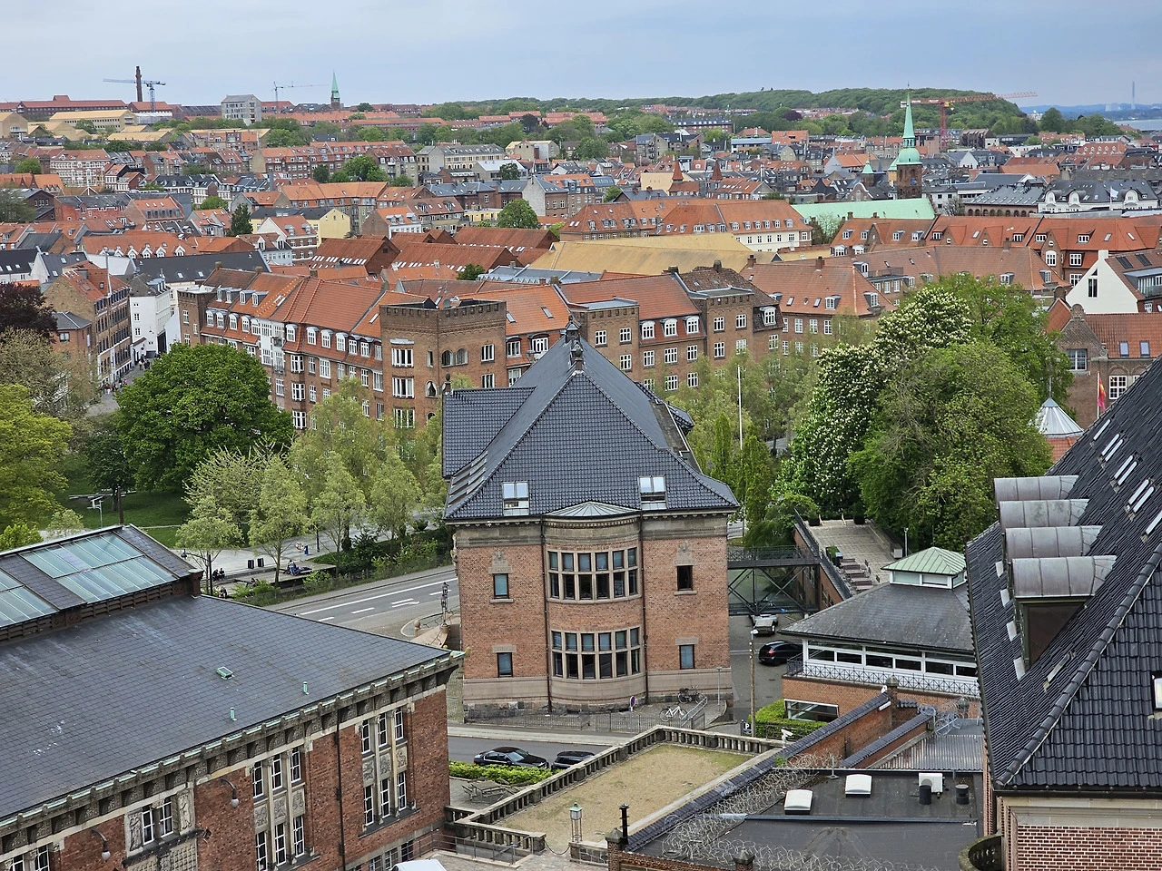 옥상 테라스에 올라 사방으로 펼쳐지는 오르후스의 고즈넉한 풍경을 감상한다.