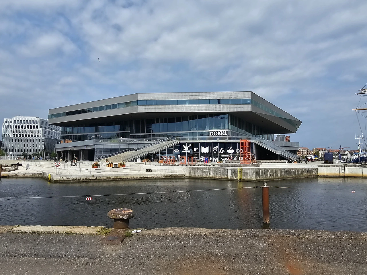배에서 내리자 항구 가까이에 자리한 오르후스 공립 도서관 '도크1(DOKK1)'이 거대한 모습을 드러내고 있다.