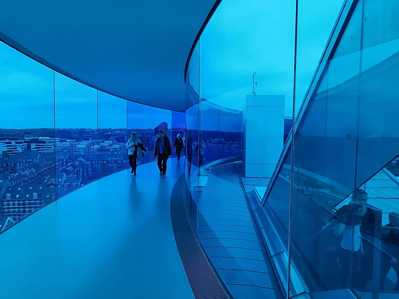 레인보우 파노라마 속으로 직접 걸어 들어가 봤다. 걸음을 내디딜 때마다 파랗고 노랗고 붉은, 다채로운 빛이 대성당의 첨탑과 고풍스러운 지붕들로 가득한 오르후스 시내를 물들이며 세심하게 설계된 환상적인 파노라마 전망을 연출해 낸다.