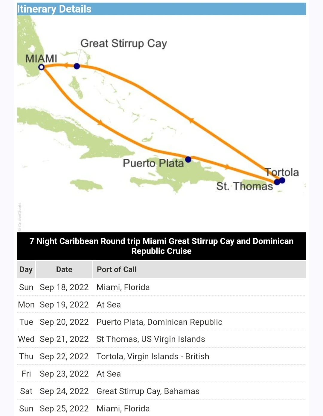 카리브 크루즈는 대부분 미국 플로리다 반도의 마이애미 항구를 중심으로 출발하며, 항로는 보통 동카리브와 서카리브로 나뉜다.