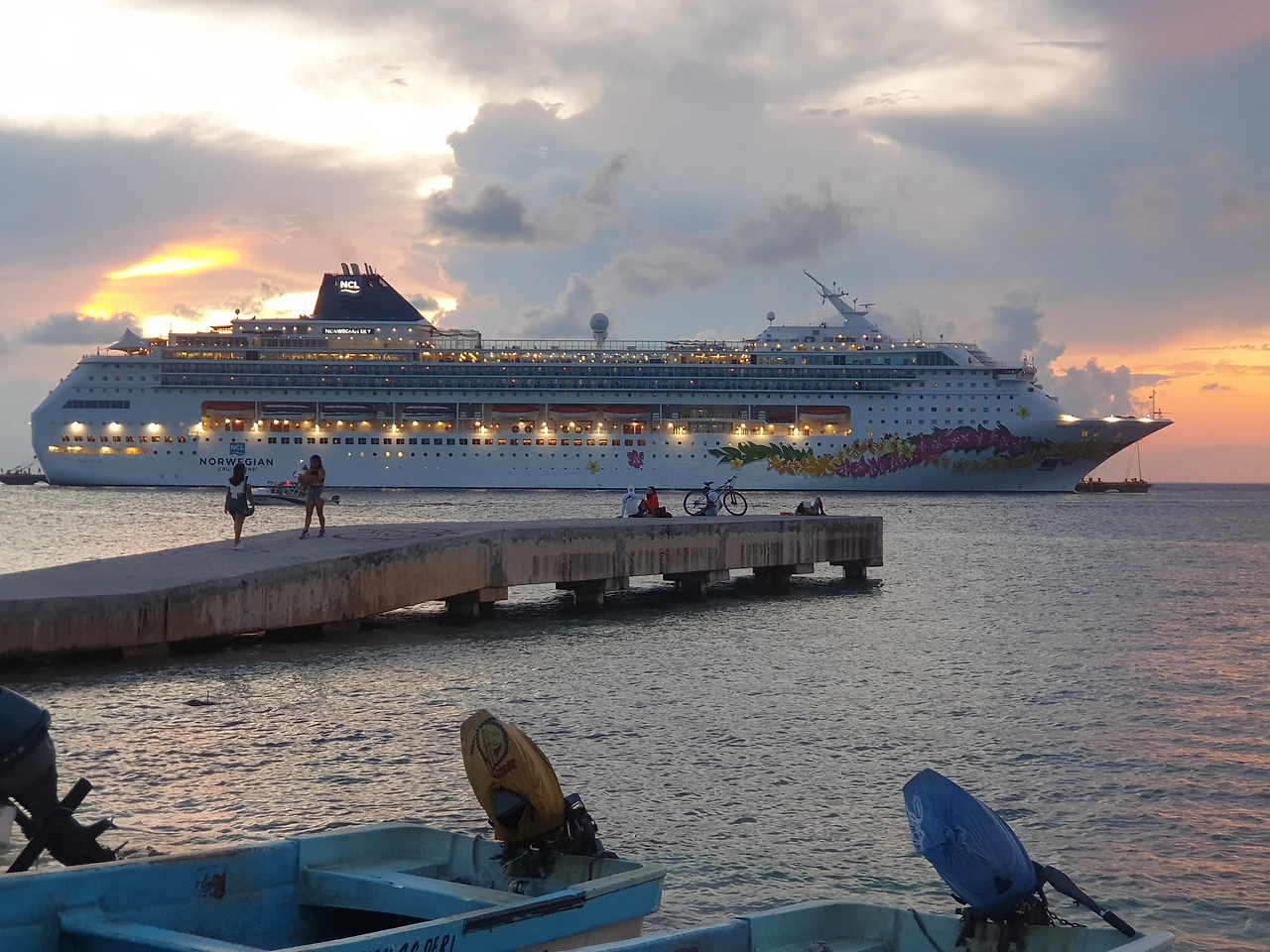 코주멜로 돌아와 해 지는 거리를 걸어본다. 바다에 떠있는 유람선이 '돌아갈 내 집'이라 생각하니 마음이 푸근해진다.