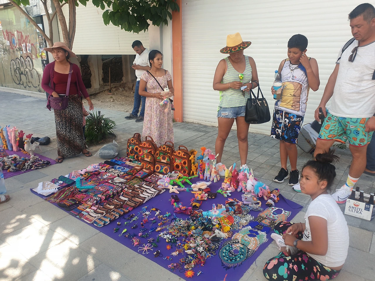 돗자리 위에 기념품을 늘어놓고 있는 여인들은 마야인 같다. 이 지역에 스페인 원정대가 도착한 게 16세기, 그 당시 마야인 인구가 만여 명이었는데 유럽인이 퍼트린 천연두로 몇십 년 만에 고작 수백 명 만이 살아남았다고 한다.
