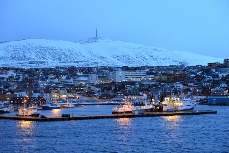 새벽녘 부두에서 처음 마주친 함메르페스트(Hammerfest) 항구는 설산과 마을이 함께 붙어있는 듯한 풍경이었다. 배에서 본 시내 도로는 얼음으로 반짝거리는 게 무척이나 추워 보였다. 바짝 겁을 집어먹고 중무장을 한 채 나섰지만 의외로 공기가 그리 매섭지 않다. 기온은 0도.