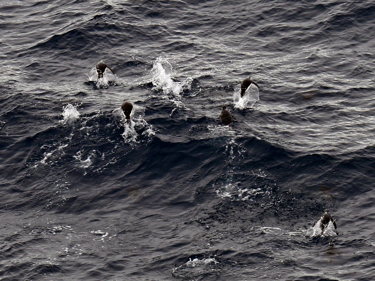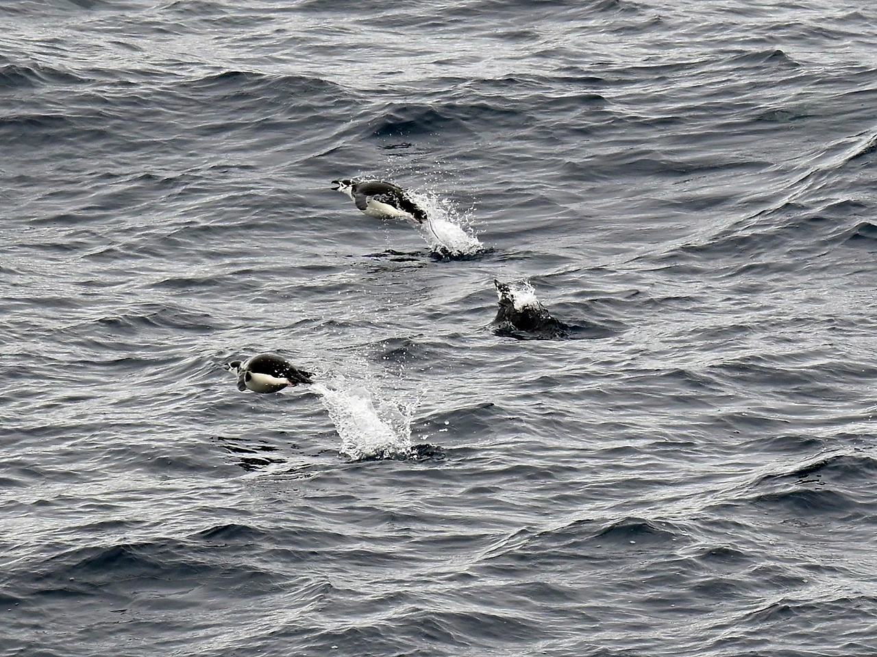 바다에서 먹이 활동을 하던 펭귄들은 배가 다가오자 해안선 쪽으로 헤엄쳐 도망간다. 날아오르듯 수면 위로 솟아올랐다가 바닷속으로 들어가는 모습이 정말 활기차고 귀엽다.