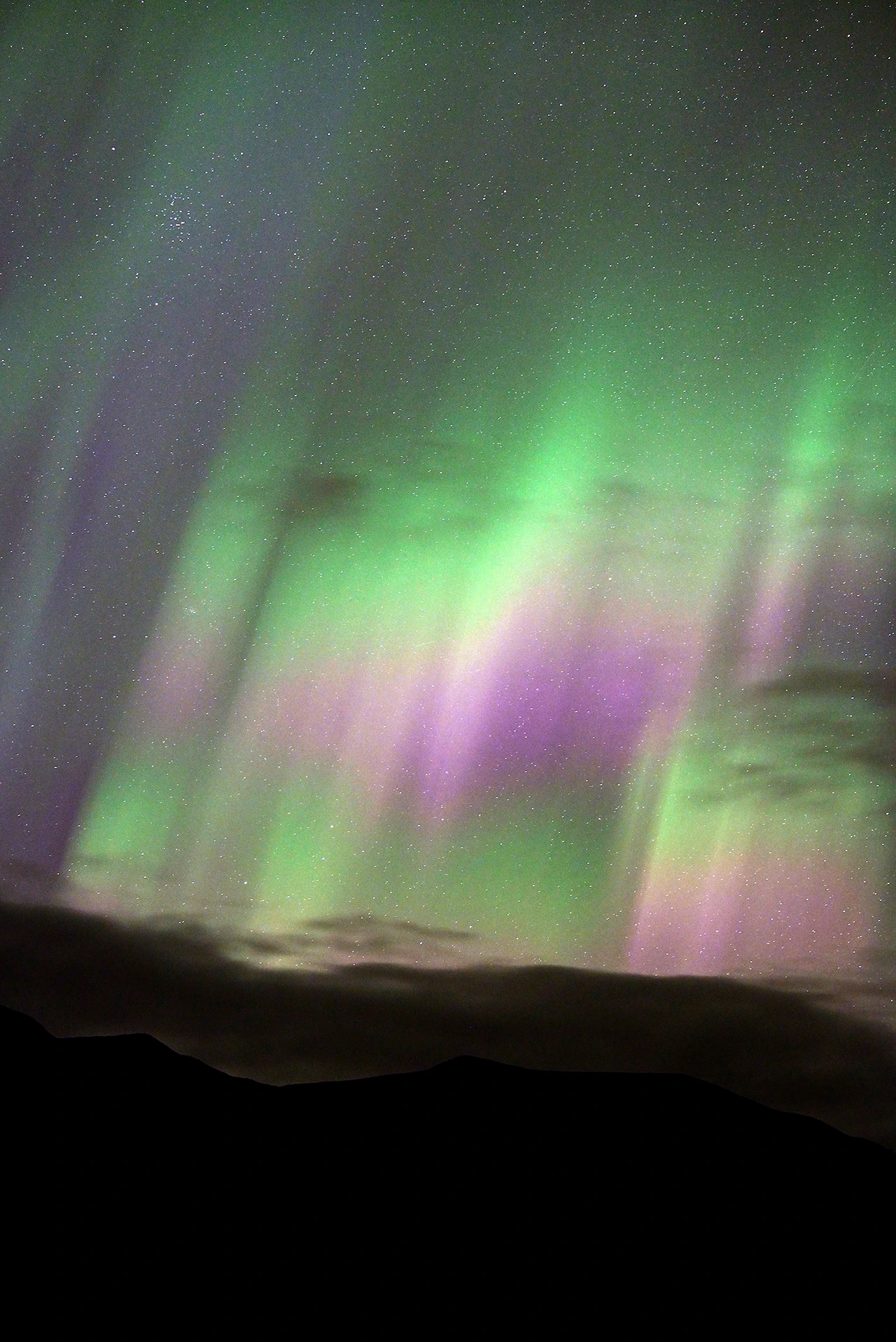 북유럽, 알래스카, 캐나다의 오로라처럼 몇십 분에서 한 시간씩 이어지는 장관이 아니라, 이곳의 오로라는 몇십 초를 넘기지 못했다. 하늘을 가득 채웠다가 스르르 사라지고, 동서로 아치를 그리다가 금세 흔적을 감춘다. 카메라에는 온 하늘이 초록빛으로 덮여 나오지만, 지속성이나 강렬함이 부족했다. 내가 기대하던 ‘오로라 스톰’은 없었다.