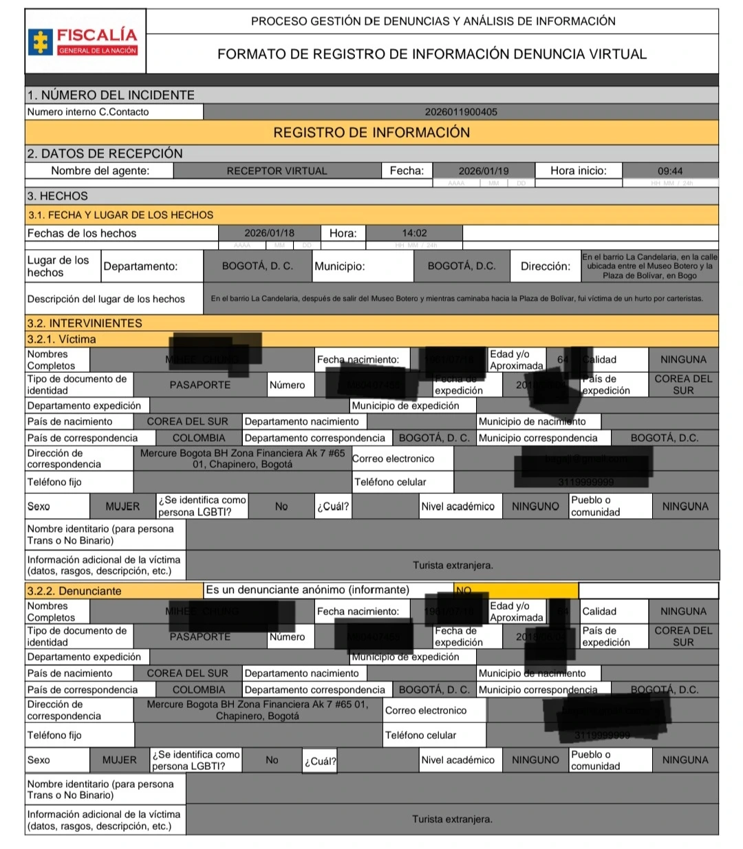 보고타에서 바로 귀국하는 게 아니라 멕시코시티에서 사흘을 머물러야 했다. 호텔에서 QR코드를 통해 콜롬비아 검찰청에 사고 신고를 했다. 번역기와 AI가 도와주는 요즘이라 가능한 과정이다. J가 상트페테르부르크에서 동행자의 카메라 도난 사고로 경찰서를 찾았던 일을 떠올렸다. 러시아어로만 쓰여있는 서류를 내어주며 작성하라는데 도저히 할 수가 없어 돌아왔다던 때가 2016년이었다.
