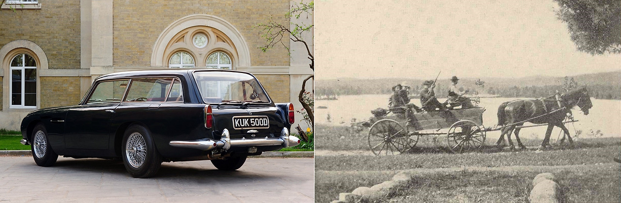 왜건이랑 비슷하게 생겼지만, 주로 2-도어 쿠페를 바탕으로 만든 슈팅 브레이크(shooting brake)도 있죠. 이는 사냥용 무개 마차인 브레이크(brake)에서 유래했는데요. 브레이크는 주로 총과 탄환, 각종 짐과 사냥한 동물을 싣고 올 수 있는 적재공간을 갖춘 승용 마차였습니다. 제동할 때 쓰는 브레이크와 철자가 같지만, 그 어원은 네덜란드어로 '카트'나 '마차'를 의미하는 brik입니다. 사냥은 주로 상류층의 여가였기에, 자동차 시대에는 고급 그랜드 투어러에 왜건처럼 넓은 적재공간을 갖춘 차를 의미합니다.