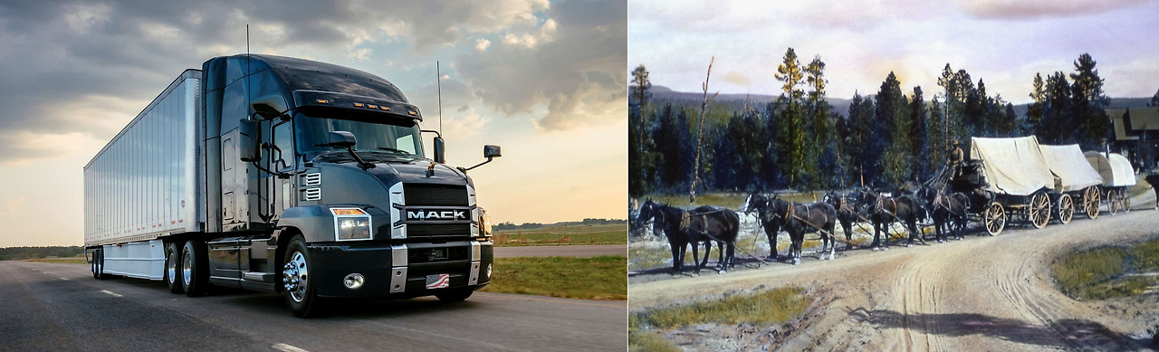 이 중(重)화물용 바퀴는 마차에도 이식됐습니다. 무거운 짐이나 군수물자를 실어 나르는 짐마차에 주로 사용됐는데, 나중에는 의미가 확장돼 대형 짐마차 자체를 트럭이라고 부르게 됩니다. 내연기관이 얹힌 트럭 마차를 모터 트럭(motor truck)이라고 불렀는데, 이제는 뒷 부분만 따 와 트럭이라고 부르는 것이죠.