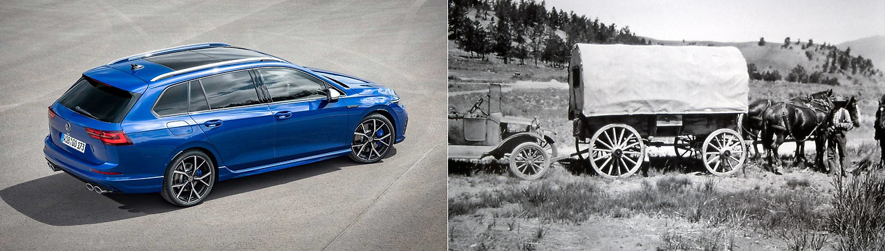 근교의 기차역에서 내리는 사람과 화물을 목적지까지 실어 나르는, 일종의 셔틀 역할을 하는 짐마차도 있었는데요. 이런 마차를 스테이션 왜건(station wagon, 역마차)나 에스테이트 카(estate car)라고 불렀습니다. 짐과 화물을 동시에 실을 수 있다는 게 특징인데, 오늘날 승용차의 트렁크 공간을 확장한 차를 왜건이나 에스테이트라고 부르는 것이 여기서 유래합니다.