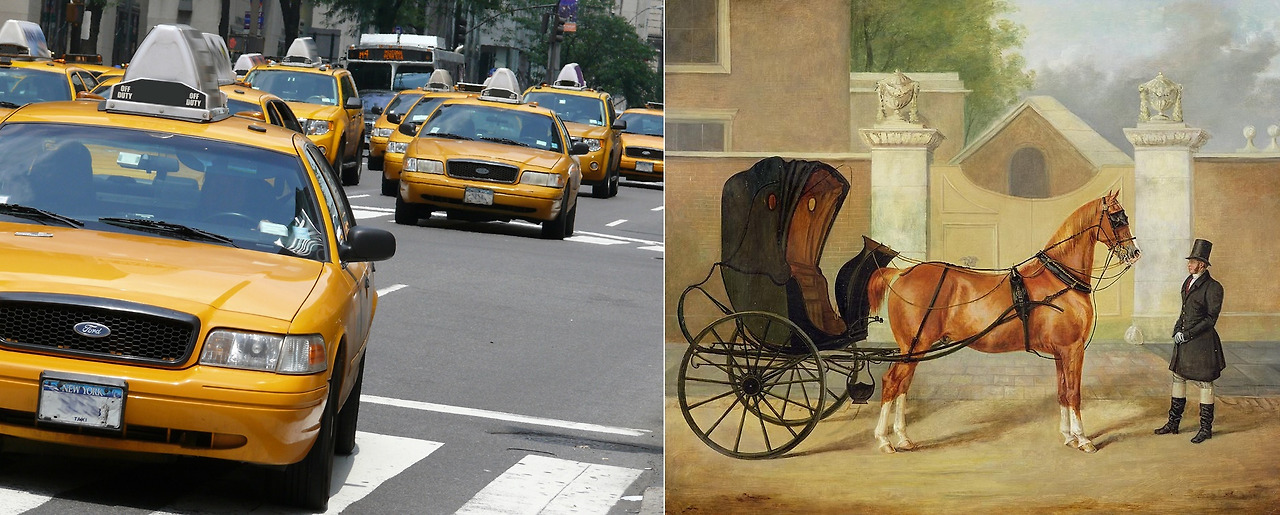 재미있는 건, 이 서양에서 택시 차량을 일컫는 택시캡(taxicab) 또한 같은 어원에서 유래했다는 사실입니다. 택시캡은 원래 택시 카브리올레(taxi cabriolet)의 약칭입니다. 근대 서양 도시에서 카브리올레는 일정 요금을 내고 목적지까지 태워다 주는 영업용으로 두루 사용됐는데요. 그래서 '세금', '요금' 등을 의미하는 tax를 앞에 붙여 택시 카브리올레라고 불렀습니다. 이를 줄여 '택시캡'으로 부르던 것이 오늘날의 택시가 된 것이죠.