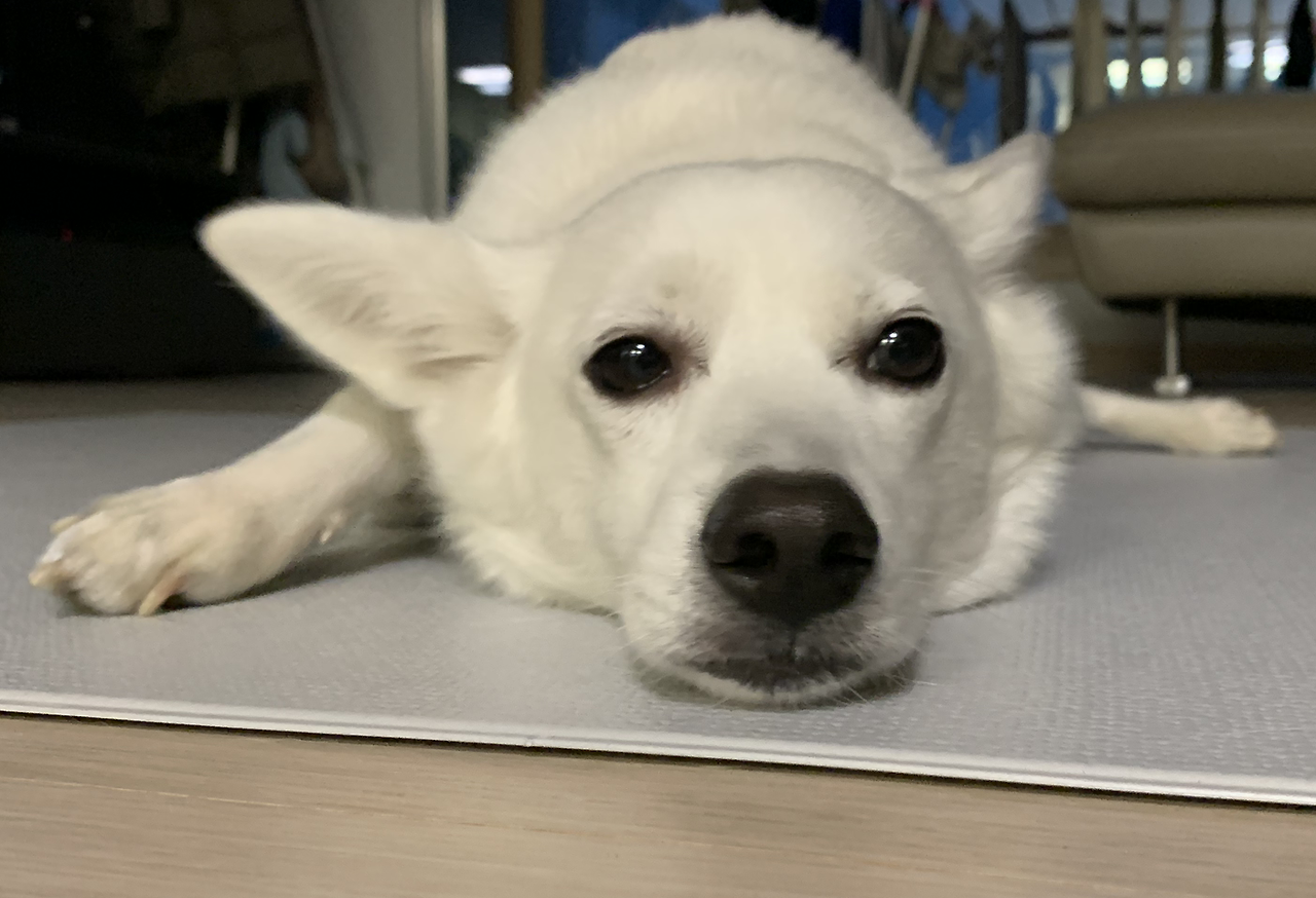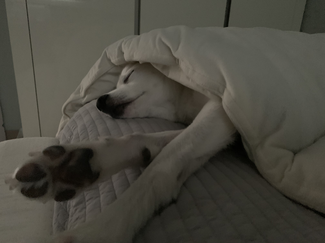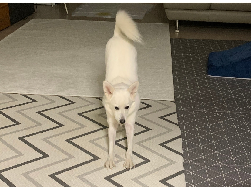 산책 후 오전은 주로 레체의 아침잠 시간이다. 동거인들이 업무나 할 일을 하는 동안 레체는 책상 밑이나 켄넬 안, 또는 침대 위에서 조용히 잠을 잔다.