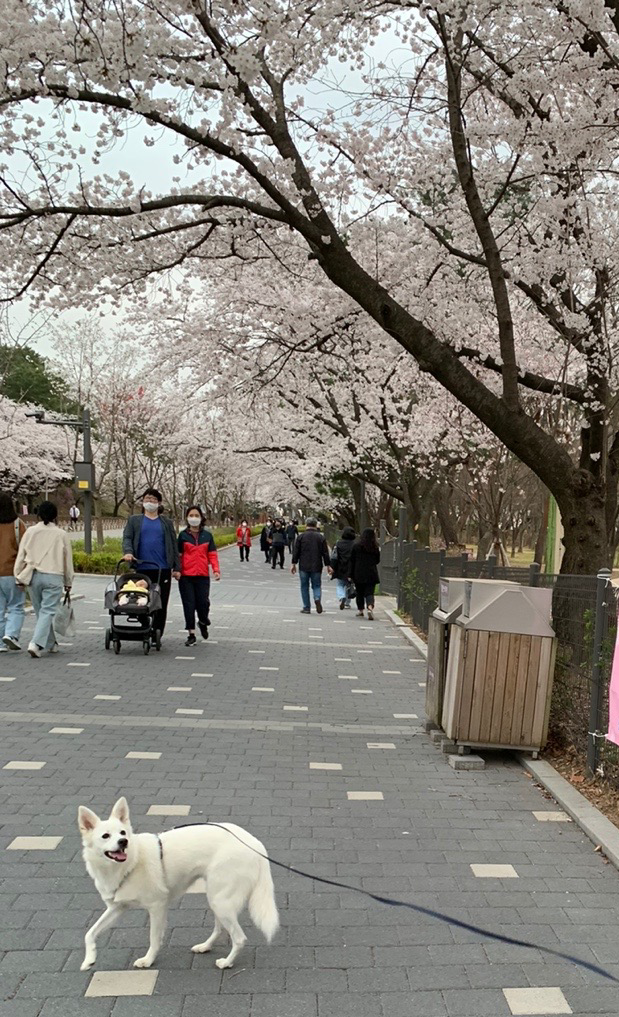 나는 꽃구경의 큰 팬은 아니지만 레체를 만나고 나서 꽃구경 단풍구경 가는 일이 잦아졌다. 레체와 함께하는 나들이는 언제나 옳긴 하지만 봄이 살랑살랑 올 때면 산책도 그만큼 즐겁게 할 수 있어서 두 배로 즐거웠다.
