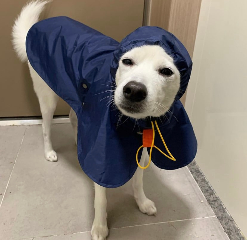 멋진 우비를 사줬지만 레체가 이에 적응하는 데는 꽤나 걸렸다. 귀에 물이 들어가는 것을 방지하기 위해서 귀를 모자 안에 넣고 지퍼로 묶어줘야 하는데 그 상태에서는 걸리적거리는지 자꾸만 귀를 빼려고 애썼다.