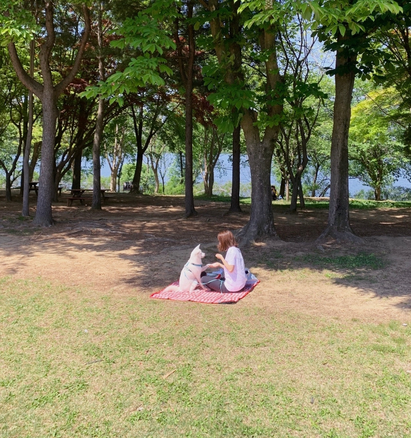 레체는 프로 산책러이지만 레체와 함께 하는 소풍은 평소와는 다른 준비가 필요했다. 우선 돗자리를 피고 세팅을 하는 동안에도 한 사람은 레체 줄을 늘 잡고 있어야 하기 때문에 2명 이상의 인원이 필요하다. 레체가 목마를 경우, 배고플 경우를 위해 물과 간식을 챙겨야 하고 무언가 묻을 경우에 대한 대비도 해야 한다. 레체는 기본적으로 말 잘 듣고 손이 덜 가는 아이이지만 또 무슨 일이 벌어질지 몰라 외출은 늘 긴장되고 정신을 바짝 차리게 되었다.