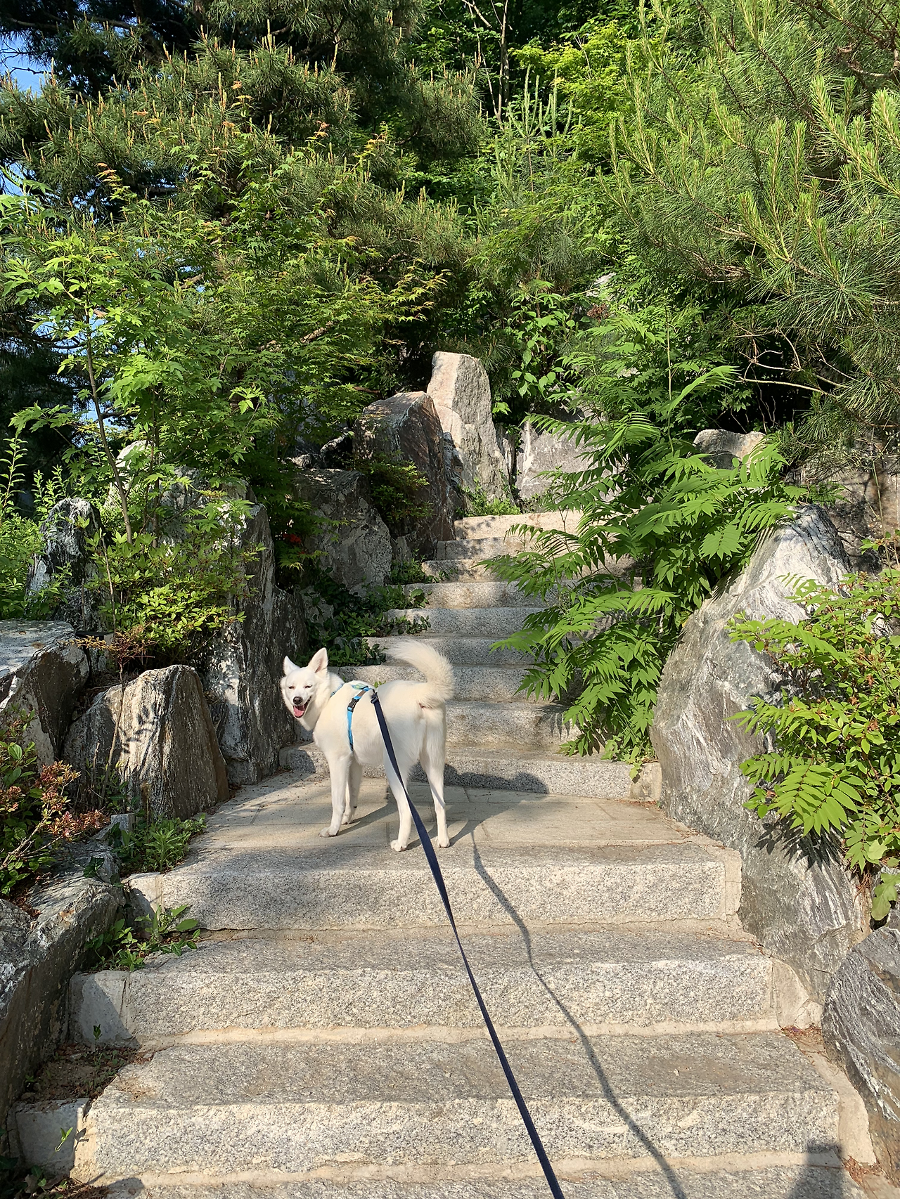 아파트 뒤편으로 보이는 작은 동산. 여기도 숲이라고 여기서 맡는 냄새와 분위기가 남다른가 보다. 벌레가 많고 저녁때 가면 조금 으스스해서 만류도 해봤지만 저렇게 꼬리 치며 원하는데 가줘야 하지 싶다.