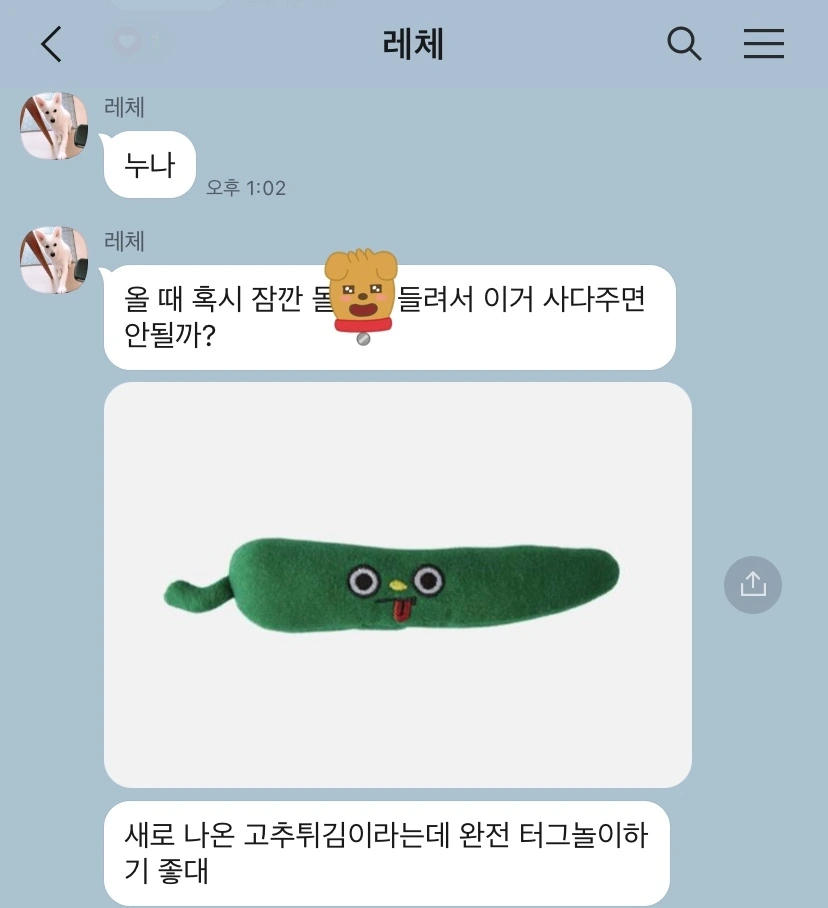최근 SNS에서 볼 수 있는 ‘모든 견주들이 꿈꾸는 강아지랑 카톡하기‘를 보며 많은 생각이 들었다. 레체와 카톡을 할 수 있게 된다면 어떨까?