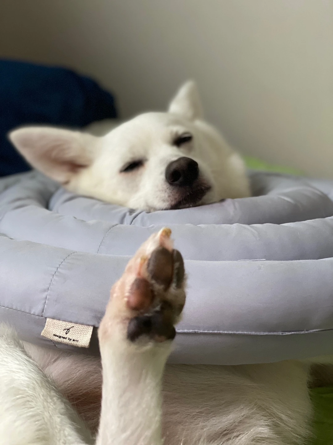 그렇게 가슴으로 키운 레체에게도 서운한 마음이 들 때가 가끔 있는데 주로 아플 때이다(레체도 사람처럼 말을 할 수 있으면 얼마나 좋을까). 어렸을 때 눈병이 나서 하루 두 번 안약을 넣어줘야 하는데 으르렁 거리며 저항했을 때, 얼마 전에 약욕을 해주고 하도 핥아서 못하게 하니 이를 드러냈을 때, 억울하고 서운한 마음이 올라왔다. 너를 해치려는 게 아니라 ’다 너를 위해서 ‘라는 것을 어떻게 납득시킬 수 있을지 (이런 것도 가스라이팅인가?) 답답해서이다.