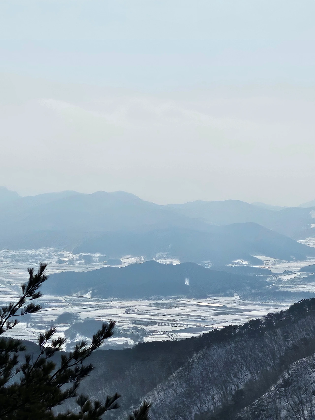 하늘길은 기러기 날아가고 땅의 길과 길이 겹치고 풀어지면서 길의 끝자락에 내장산 이정표가 걸려 있다. 먼발치에 펼쳐진 내장산 설산 풍경은 평화롭고 안락하다.