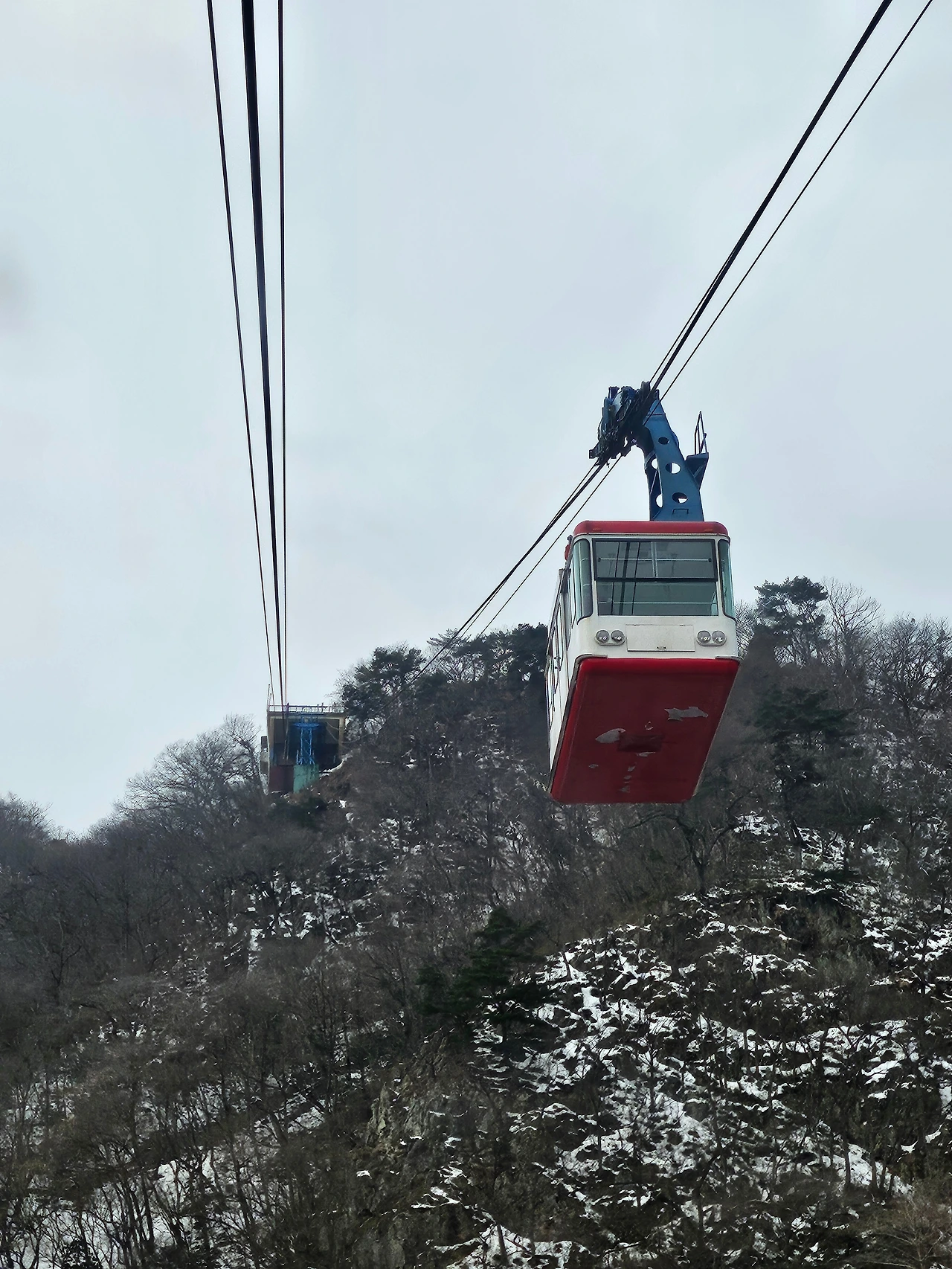 산맥과 산맥이 가까이 다가서고 문명은 사람을 편안하게 하여 연자봉 중턱까지 케이블카를 타고 이동한다. 발아래 설산 속눈을 내려다보며 아득한 산맥 심장을 향해 오른다.