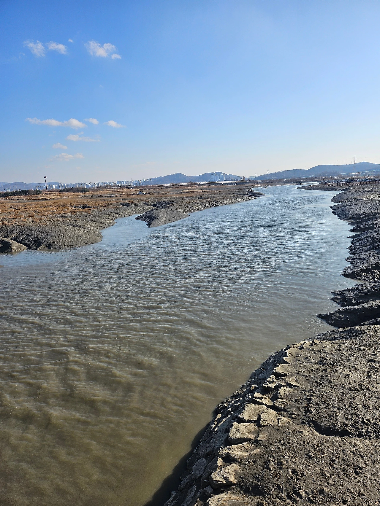 갯골이 하구로 가면서 입을 크게 벌리고 물길을 따라 바닷물이 드넓은 갈대밭을 적시며 들어오는 풍경은 살아 있는 자들과 죽어 있는 자들의 중간쯤이랄까!