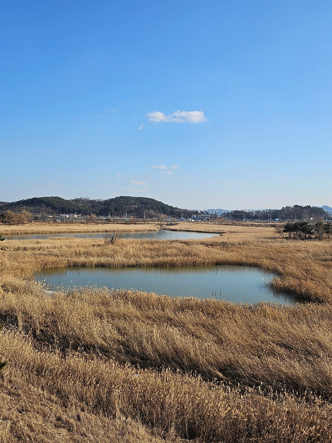 지평선과 하늘이 일자로 침묵하고 있는 드넓은 벌판이 한눈에 들어오고 여기저기 크고 작은 호수가 갈대숲 사이에서 존재감을 드러낸다.