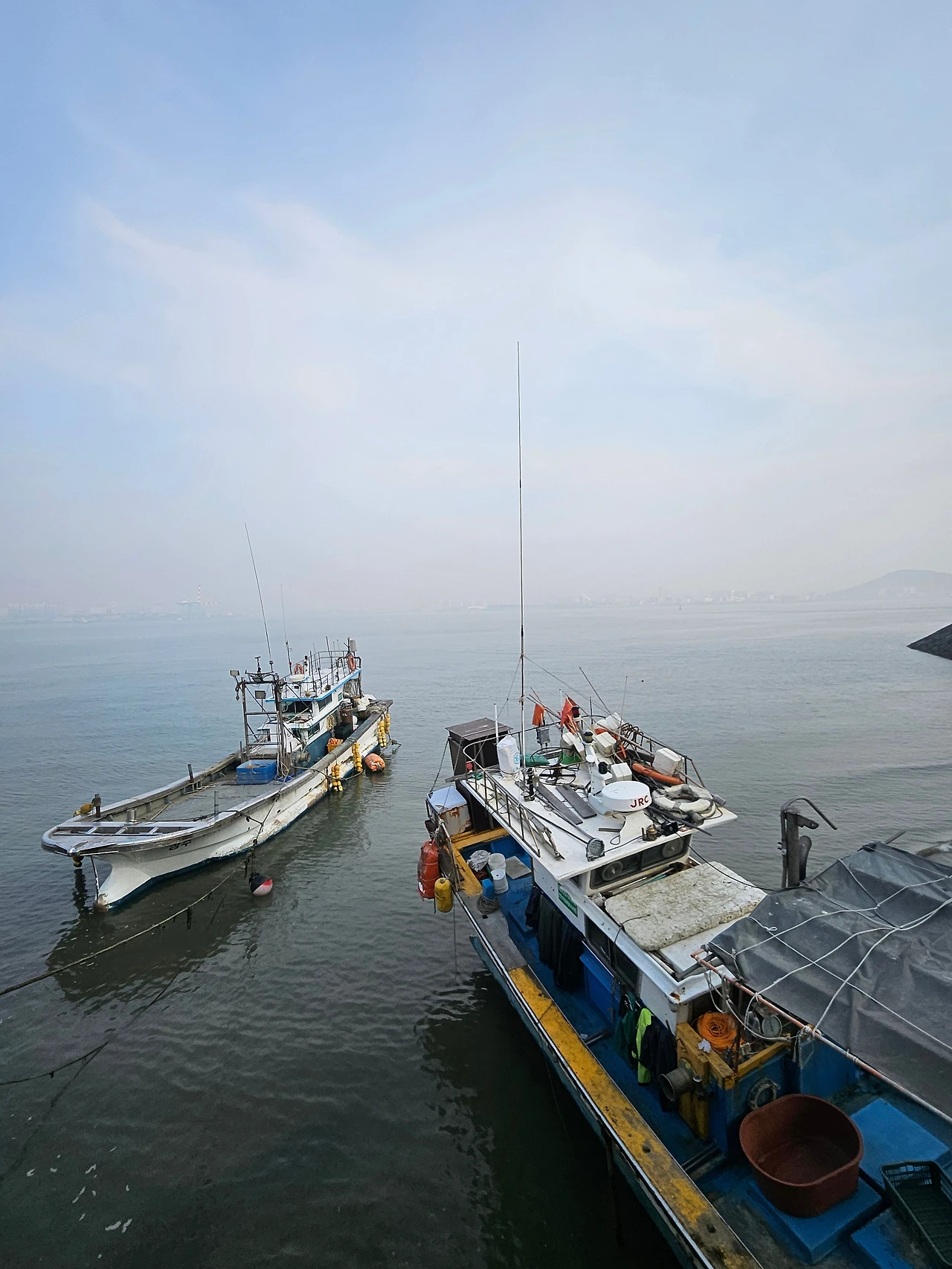십여 분을 걸어 내려가 닿은 구읍뱃터는 평일이라 한적한 포구의 풍경이다. 수십 마리 떼 지어 앉아 있는 갈매기가 포구의 주인이 되었다.