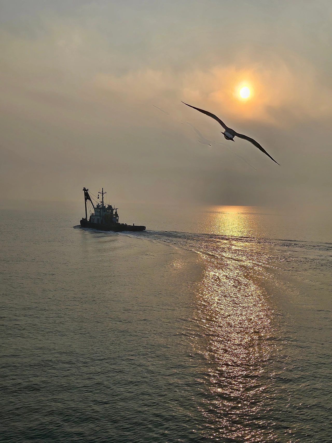 새우깡 한 조각에 구겨버린 지 오래된 바닷새의 체면은 이미 사라진지 오래된 듯 잘 다듬어진 숙련공의 날갯짓으로 선미와 선수를 넘나들어 새우깡을 향해 정교하게 날아든다.