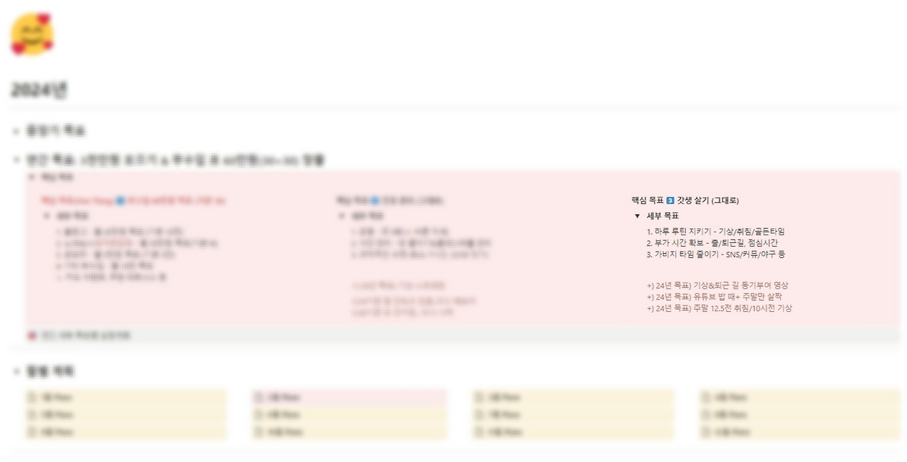 +. B가 노션에 세운 인생 계획 중 2024년에 해당하는 파트이다. B는 istp인데 특정 부분에선 지독한 계획형의 성향을 보인다.