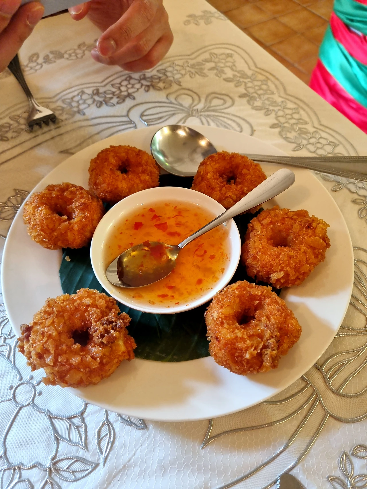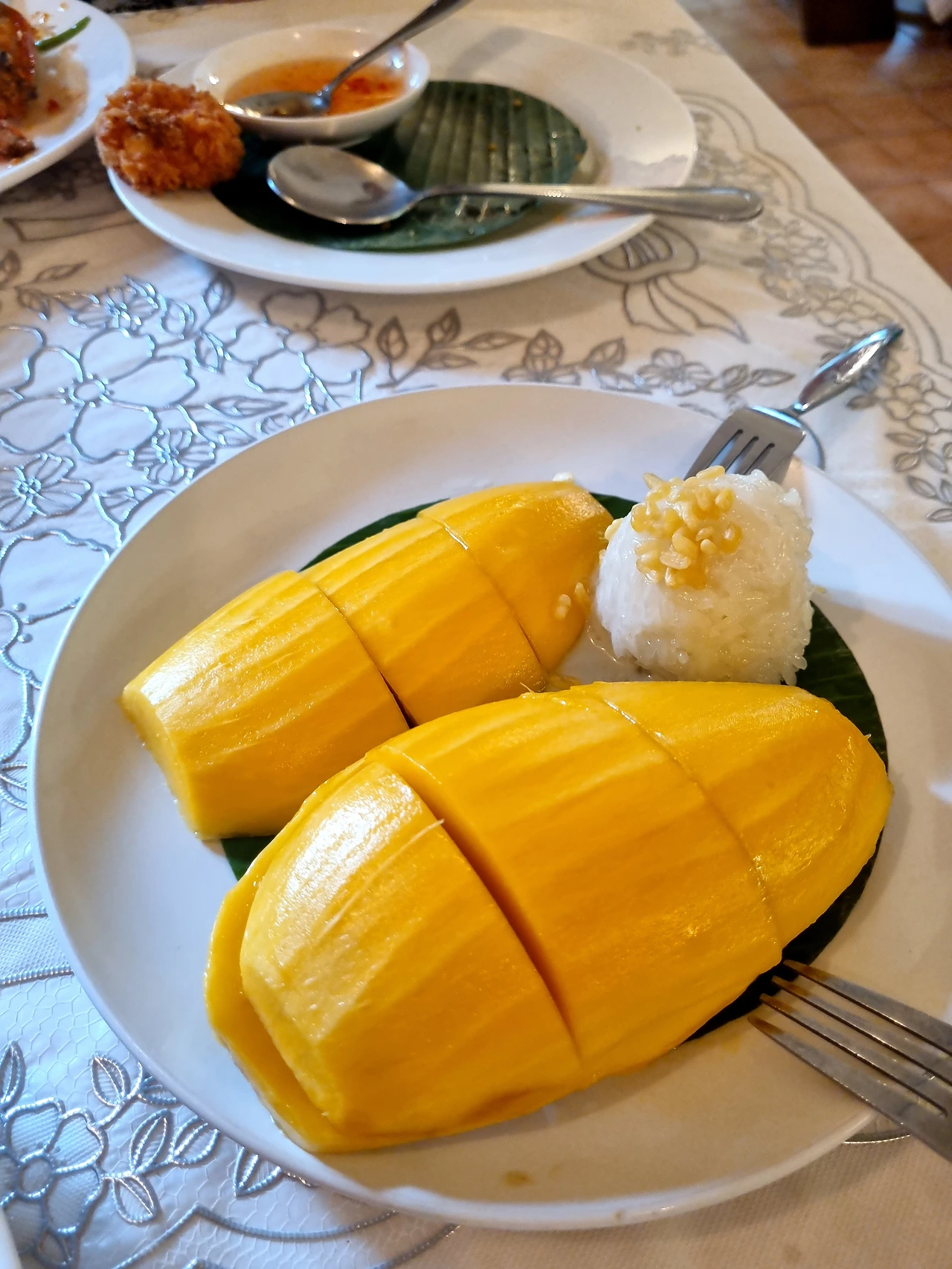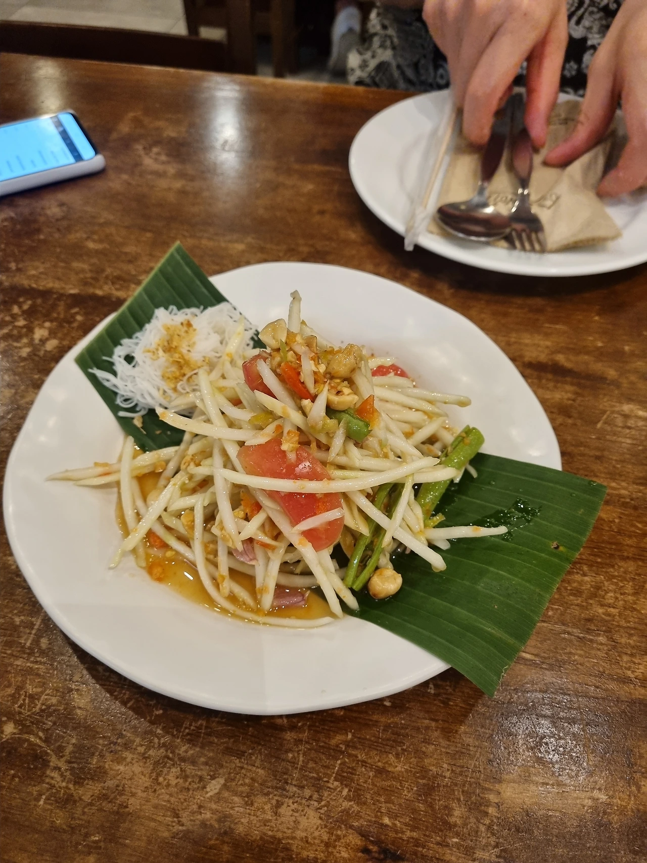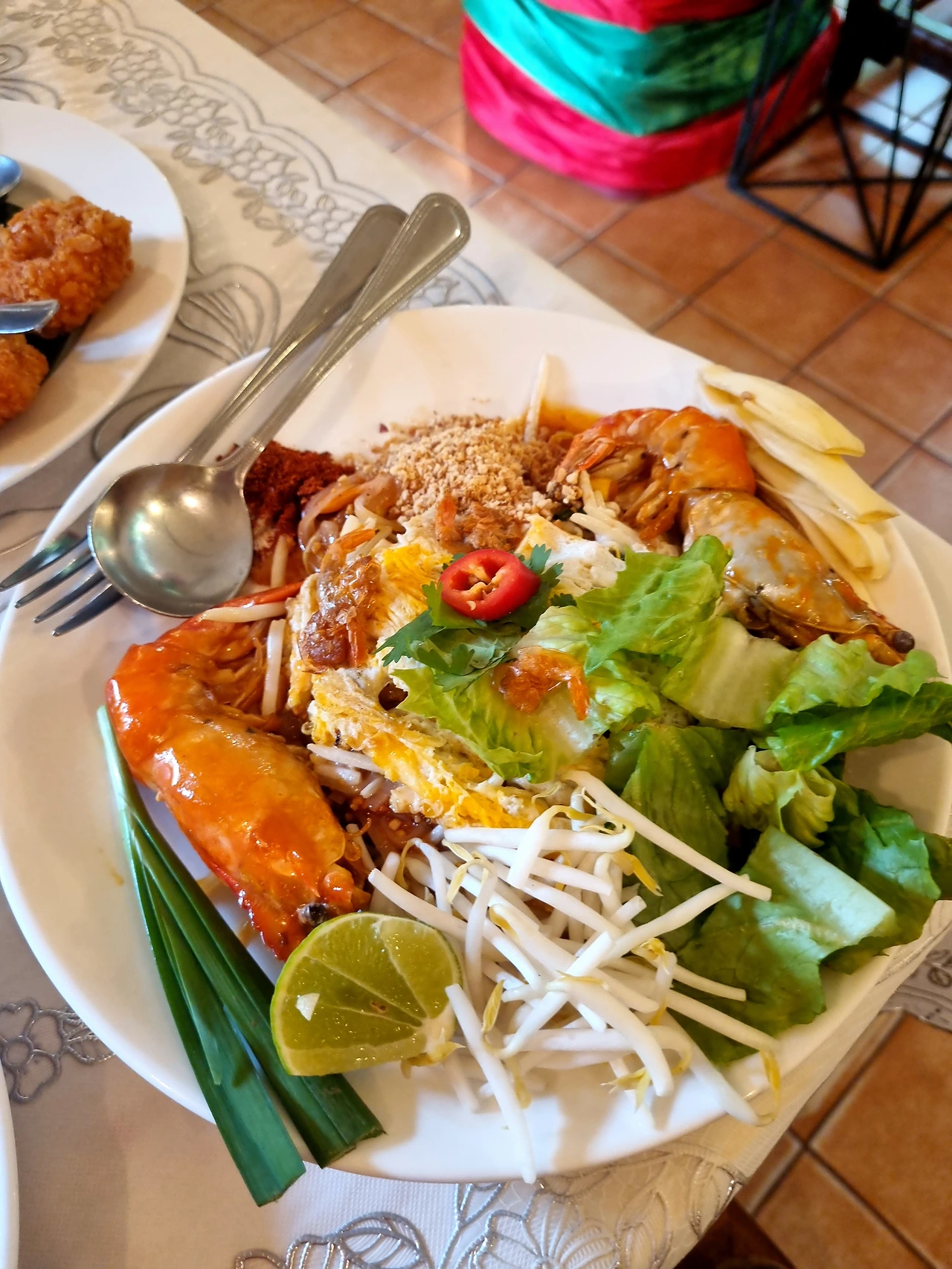 탄잉_새우튀김, 팟타이, 망고밥이다. 왕비님의 동생의 아드님이 만드신 식당이랬는데 고급지고 맛있었다. 팟타이가 조금 특이한 느낌이었다. 망고와 밥이 생각보다 잘 어울렸다.