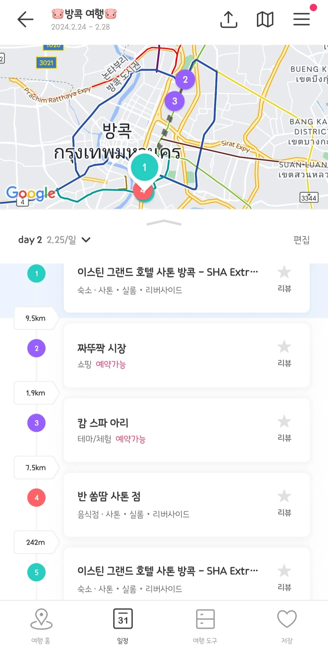 3박 5일이라는 짧은 일정임에도 엄청나게 널널하다. 사실 식당들을 빼면 하루에 한 곳 가는 셈이고, 심지어 유명한 왓 아룬 사원도 가지 않았다.