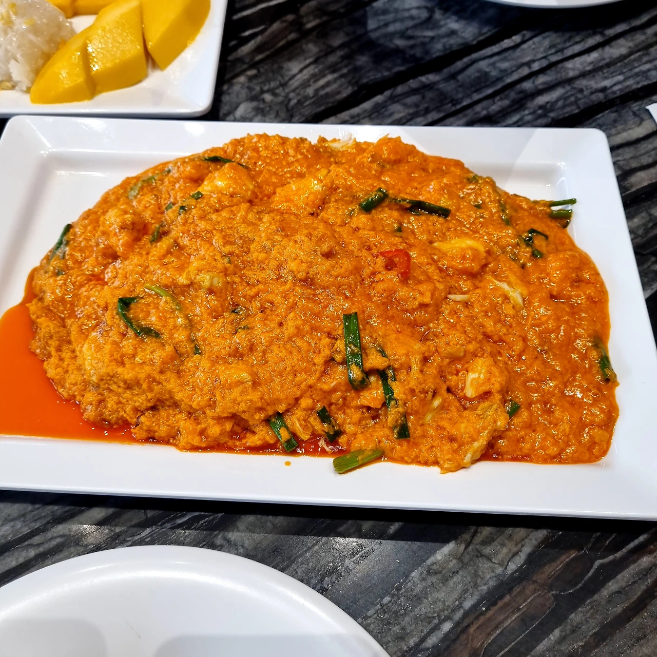 쏨분씨푸드_뿌빳퐁커리와 망고밥이다. 뿌빳퐁커리는 정말 충격적으로 맛있었지만, 계속 먹으니 김치가 필요했다.