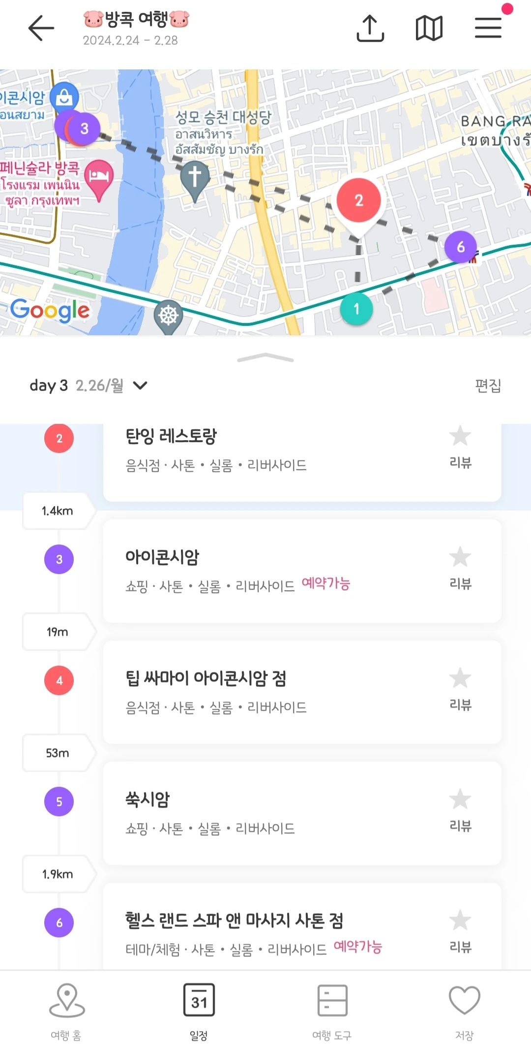 그래서 우린 여행 계획 전 꼭 하고 싶은 것들에 대한 이야기를 나눈다. 이번에 B는 마사지와 수영, 나는 아이콘시암의 전통의상&화장 체험, 짜뚜짝 주말 시장이관심사였다. 그래서 일정표를 보면 우리가 하고 싶은 것들을 넣었고, 둘 다 중요시하는 식당은 꽤나 정성껏 찾았다. 우리가 온전히 즐길 수 있는 여행 방식인 셈이다.