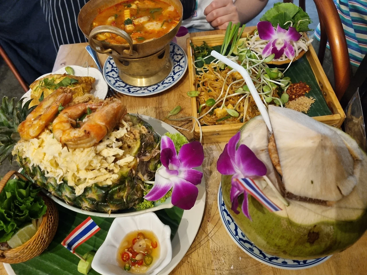 시장에서 우연히 찾은 맛집_똠양꿍, 파인애플 볶음밥, 팟타이, 코코넛 주스이다. 팟타이가 가장 맛있었고, 코코넛 주스는..... (후략)