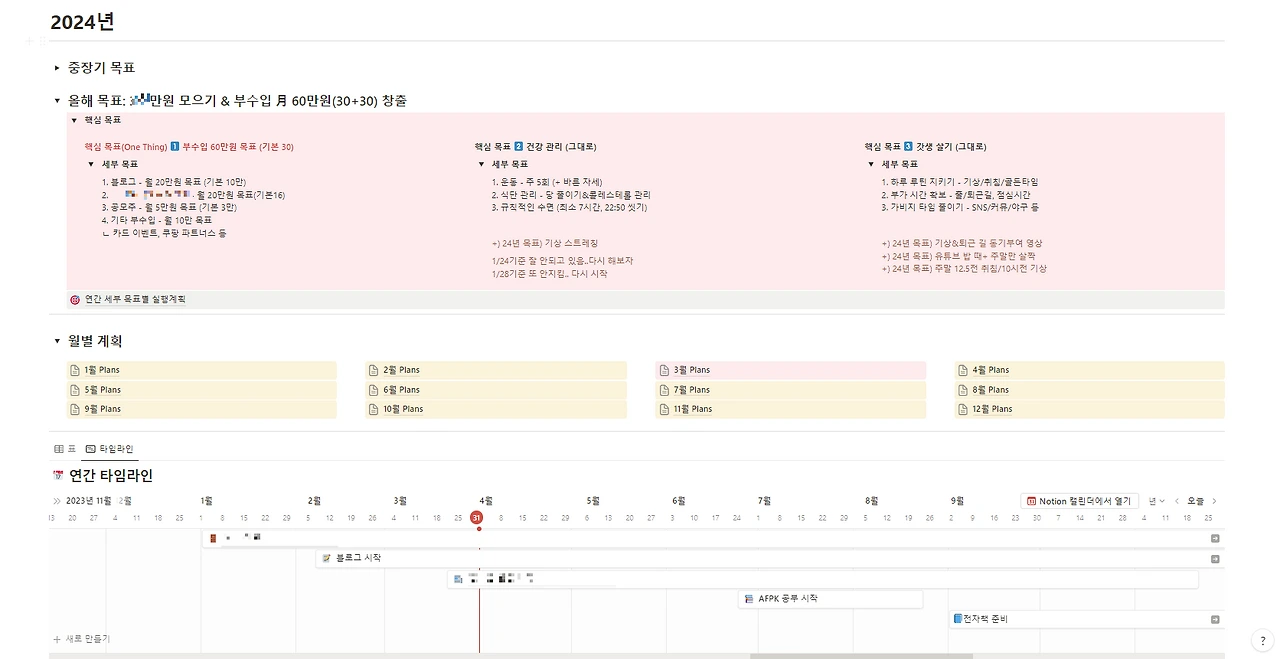 B는 노션에 이 계획을 정리하기까지 거의 일주일이 걸렸다고 한다. 그리고 신기하게도 계획을 정리하자 계획을 실행할 동력이 생겼다고 했다. 그는 자신의 노션을 나에게 공유해 주면서 틈틈이 점검해 달라는 부탁도 잊지 않았다. 정말 철저하다.