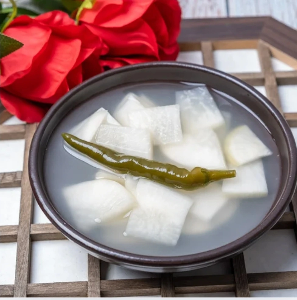 어머니는 손에 투박한 바가지를 들려주셨다. 얼음이 살짝 얼어 있는 동치미 국물을 퍼 올릴 때마다 손끝이 시렸지만, 그 풍경과 맛은 겨울마다 반복된 소중한 기억으로 남아 있다.