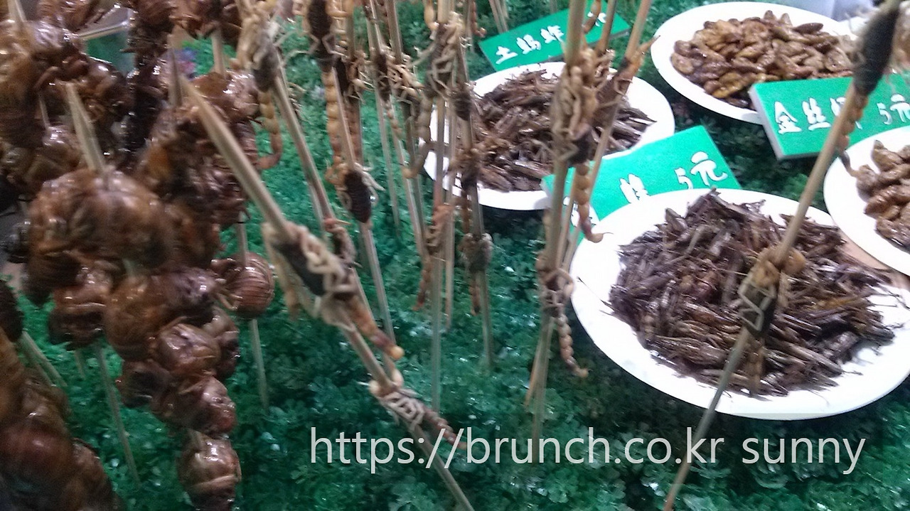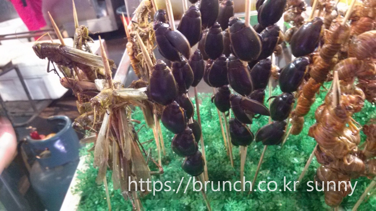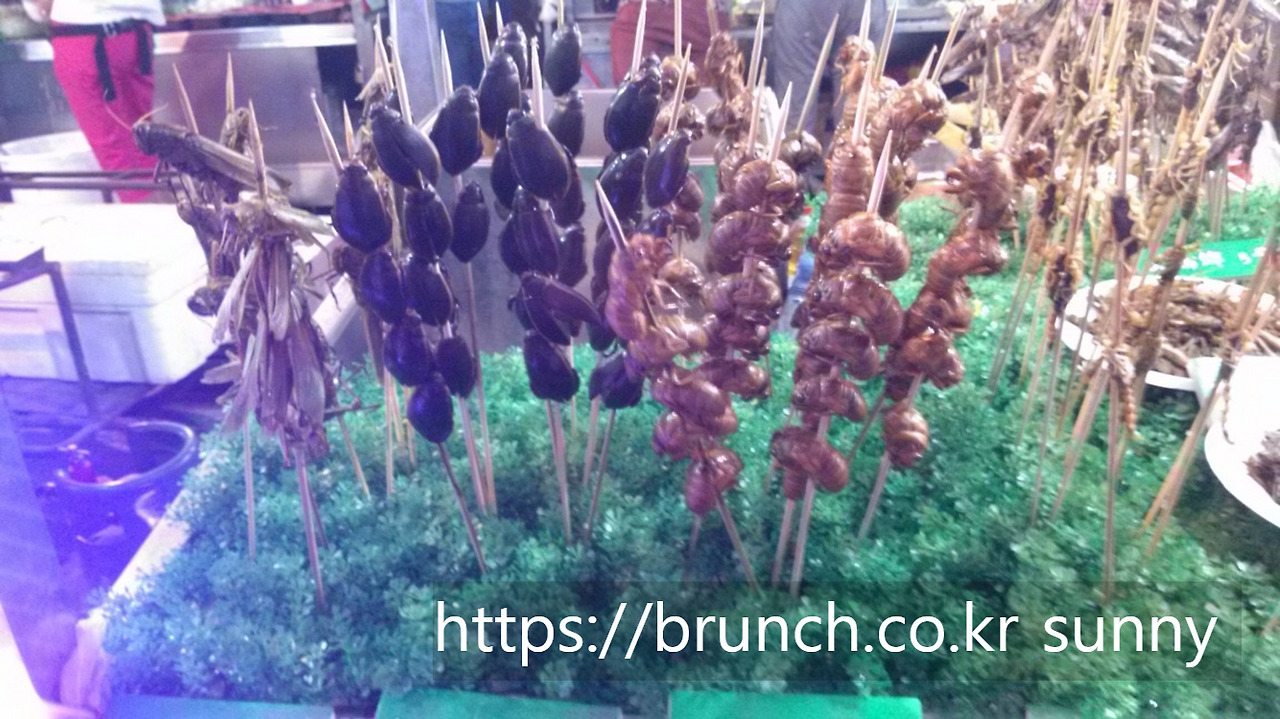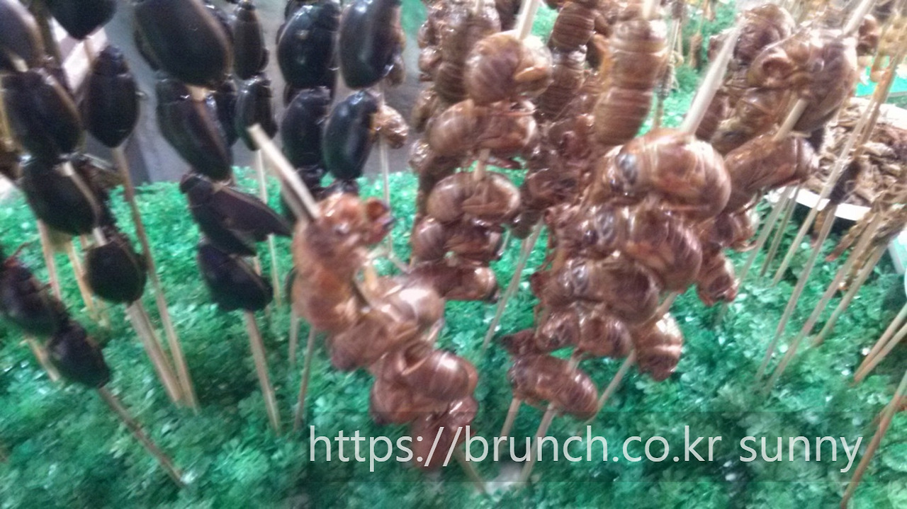 정말 다양한 각종 벌레들의 꼬치가 지금도 너무 인상이 깊은데요 이 날 사진을 정말 잘 찍어둔 것 같습니다. 저희 언니는 실제로 먹어보기까지 했었는데 지금도 정말 대단하다고 생각하는 부분입니다.