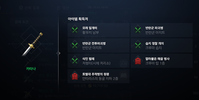 예를 들어, 내가 특정 레벨업 경험치 아이템이나 무기가 부족한 상황에서 해당 아이템의 썸네일을 클릭하면 어떤 던전이나 NPC에서 해당 아이템을 구매할 수 있는지 알려주고, 클릭 시 해당 UI나 위치로 이동할 수 있도록 도와줍니다.