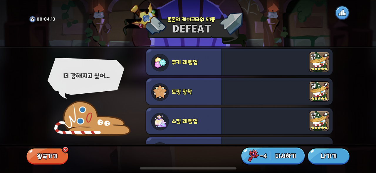 또한, 쿠키런 킹덤과 같은 게임에서처럼 특정 쿠키의 성장 화면까지 연결하는 리스트를 정렬 및 숨김 처리하여 출력함으로써 유저가 원하는 정보를 쉽게 찾을 수 있도록 부드럽게 해결할 수 있습니다.