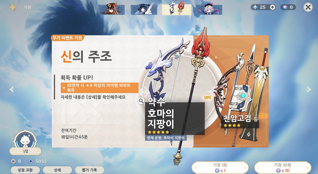 반천장은 이름에서 알 수 있듯이 100회 천장에서 '픽업 캐릭터', 즉 특정 캐릭터의 등장 확률이 50%라는 것을 의미합니다. 나머지 50%의 확률로는 해당 캐릭터와 동일한 가치의 다른 캐릭터가 나옵니다.