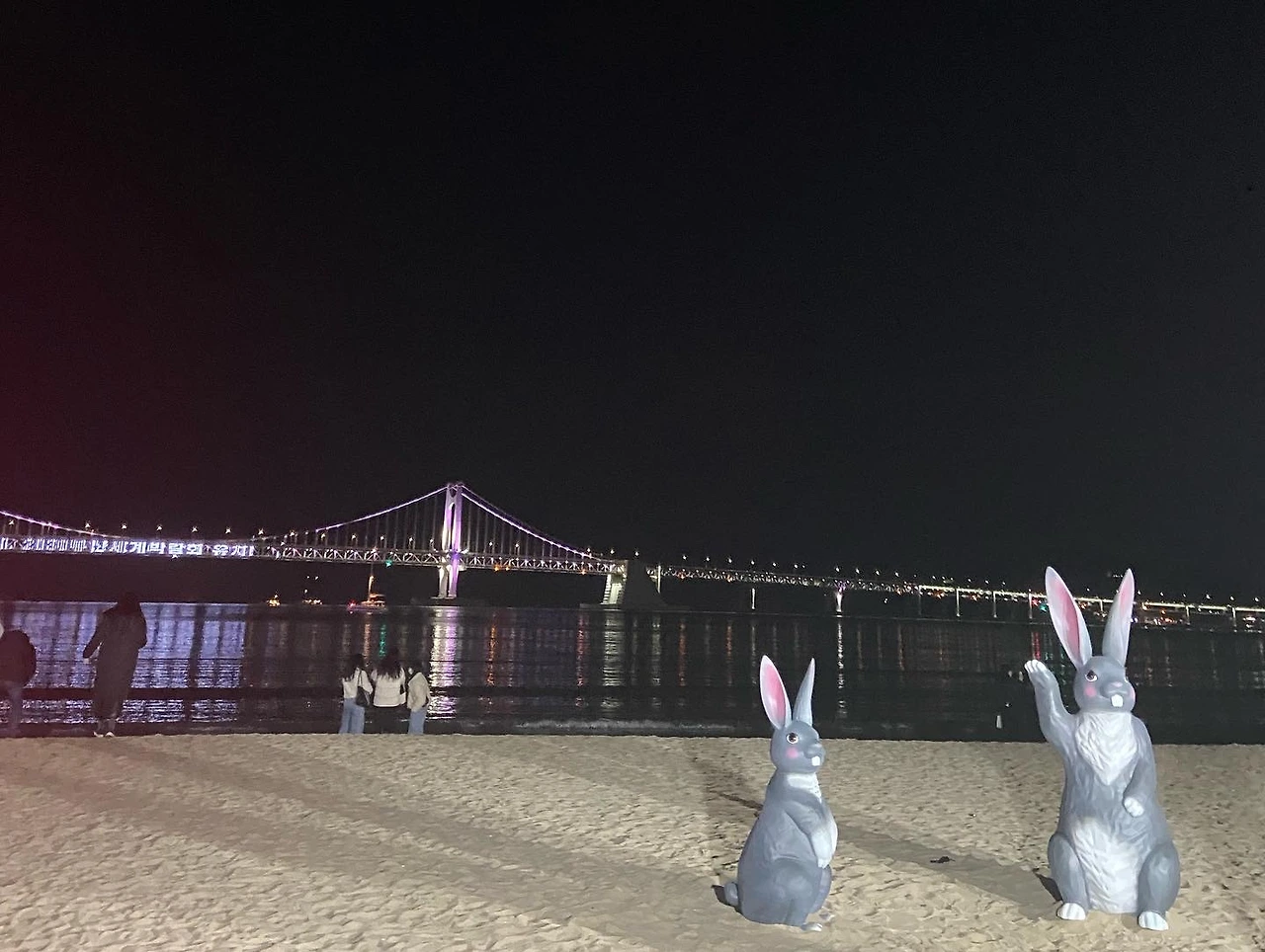 그때 호텔 통창을 통해 한눈에 쏟아져들어오는 광안리드넓은 바다. 1년만에 재회한 광안리의 밤야경에 바닥난 체력이 일순 1프로정도 충전이 되는 듯했다. 객실로 들어가 아이들을 씻기고 먹이고 8시쯤 되었을까. 갑자기 혼자 나가고 싶은 충동이 일었다. 남편에게 "나 좀 걷고 올게" 한마디를 던지고선 잠옷원피스 밑에 스타킹을 올려신고, 롱패딩으로 누추함을 한번에 무장한채 밖을 나섰다. 아무리 숏패딩이 유행이라지만(사실 오기전 아울렛에서 살까말까 고민한건 안비밀) 롱패딩만큼 편하고 따수운게 없다.