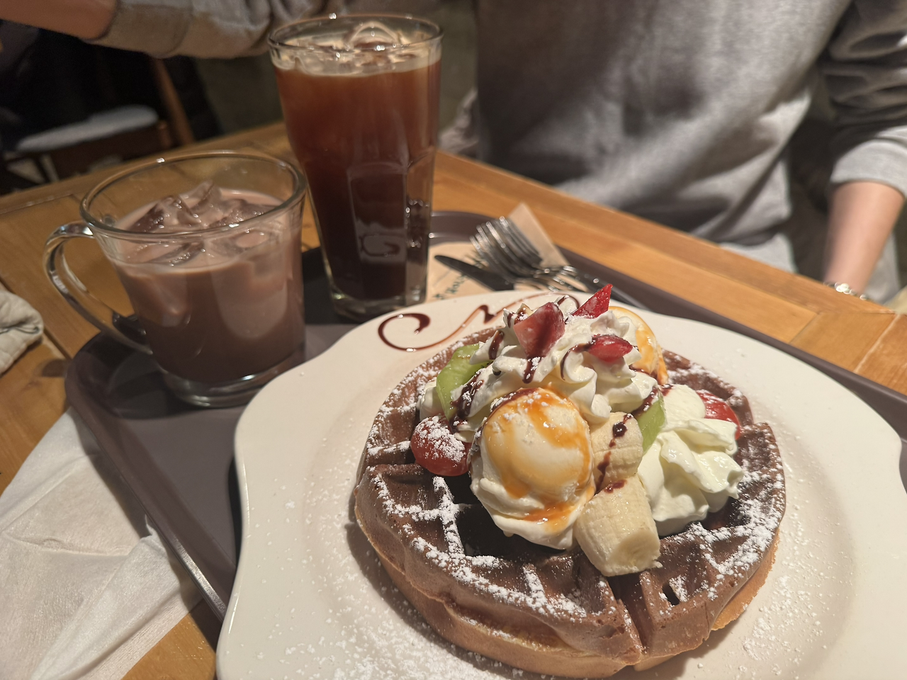 손님이 없을 거란 우리의 우려와는 달리 카페안은 이미 많은 사람들로 북적였다. 해리포터를 연상시키는 고풍스러운 건물 내부는 여전했다. 잠시 연애시절의 추억을 아스라히 떠올리며 주문대로 향했다. 남편과 나는 나란히 서서 재빨리 메뉴판을 훑었고 결정을 한 뒤 카운터 직원과 마주섰다. 세상 환한 미소를 지으며 꿀이 뚝뚝 떨어지는 다정한 목소리가 우리를 향해 울러퍼지는 순간. 직원과 우리를 둘러싼 좁은 공간에 조명 100만개가 켜진 듯한 느낌을 받았다.