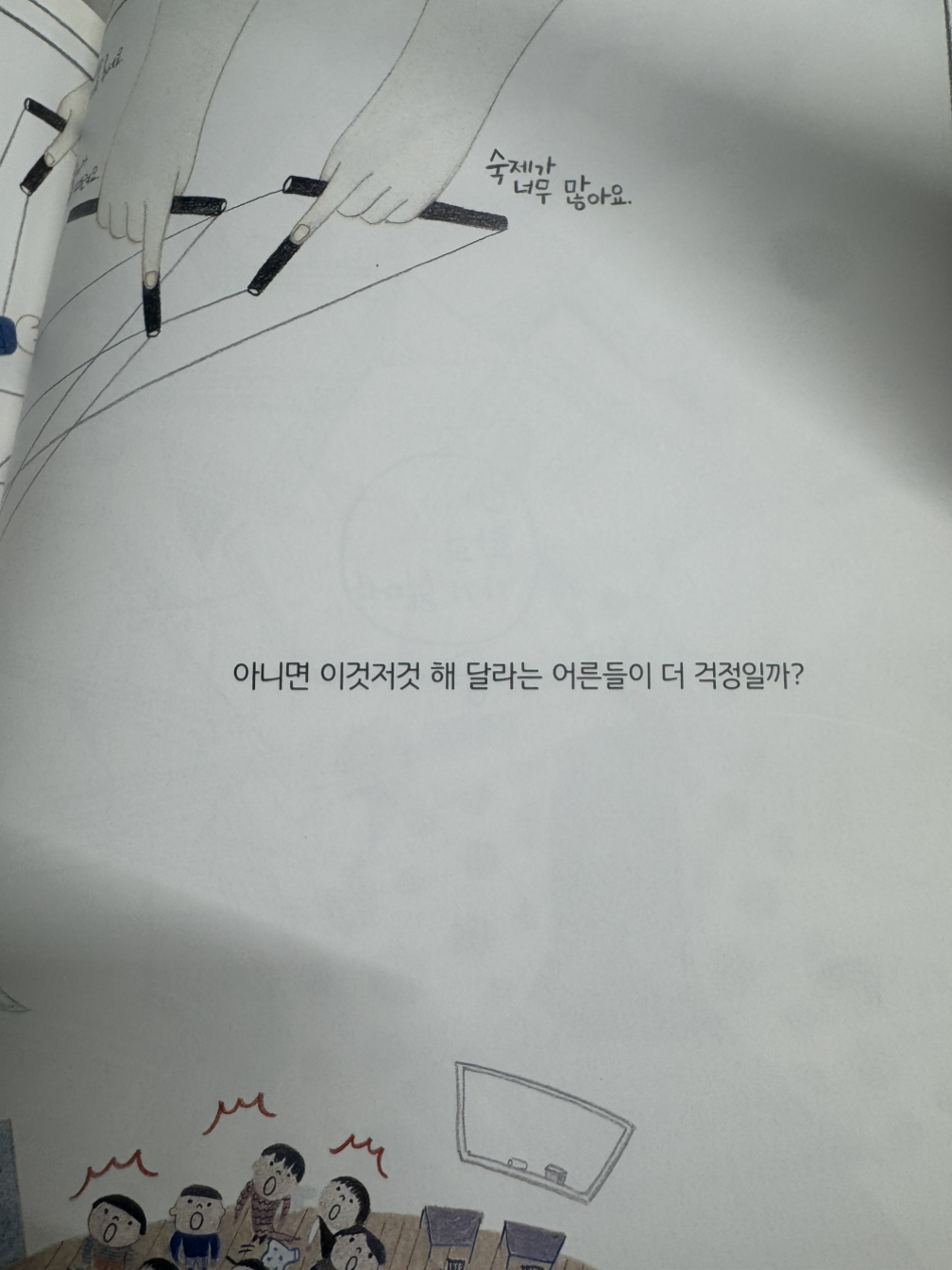 최근 개학을 앞둔 아이와 읽은 그림책 헉 오늘이 그날이래. 에서도 이런 선생님의 어려움에 대한 이야기가 그림책 말미에 여실히 드러나있다.