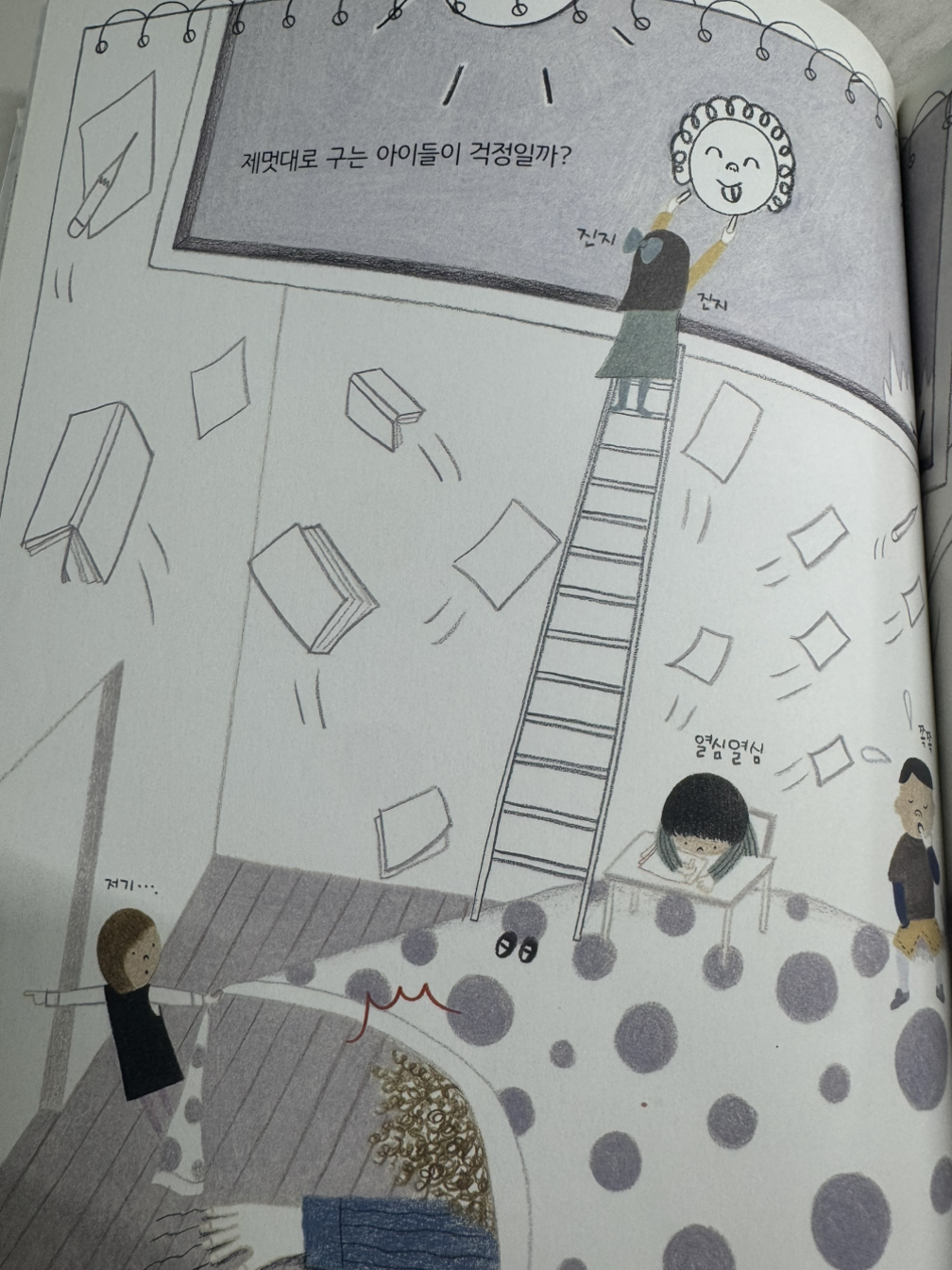 다시 그림책으로 돌아와본다. 학교가 가기 싫어 누군가는 옷장에서 발견되기도 하고, 강아지 집에서 발견되기도 하며 원인 모를 병에 걸린 것 같다고 두려워하는 아이들이 줄줄이 나온다. 나만큼이나 아이들도 새로운 교실환경과 새로운 선생님에 대한 두려움으로 무거운 발걸음을 떼어 이 교실에 왔다는 사실. 그 사실을 가슴 깊이 인지하고 우리는 같은 마음으로 이곳에 모였다는 동질감으로 하루를 시작해야겠다는 의지가 솟아오른다.